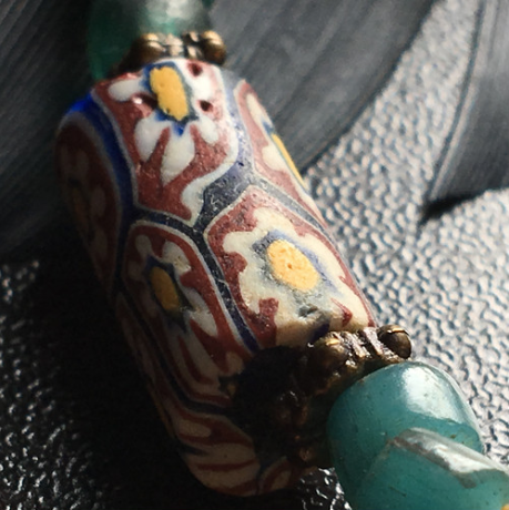 アンティークヴェネチア産のアフリカトレードビーズ_ミルフィオリ(千の花)名前の通りとても色鮮やかで種類もあるこのビーズは人々を魅了するとても美しいデザインをしています。数ある中でもこの種類だけで構成...