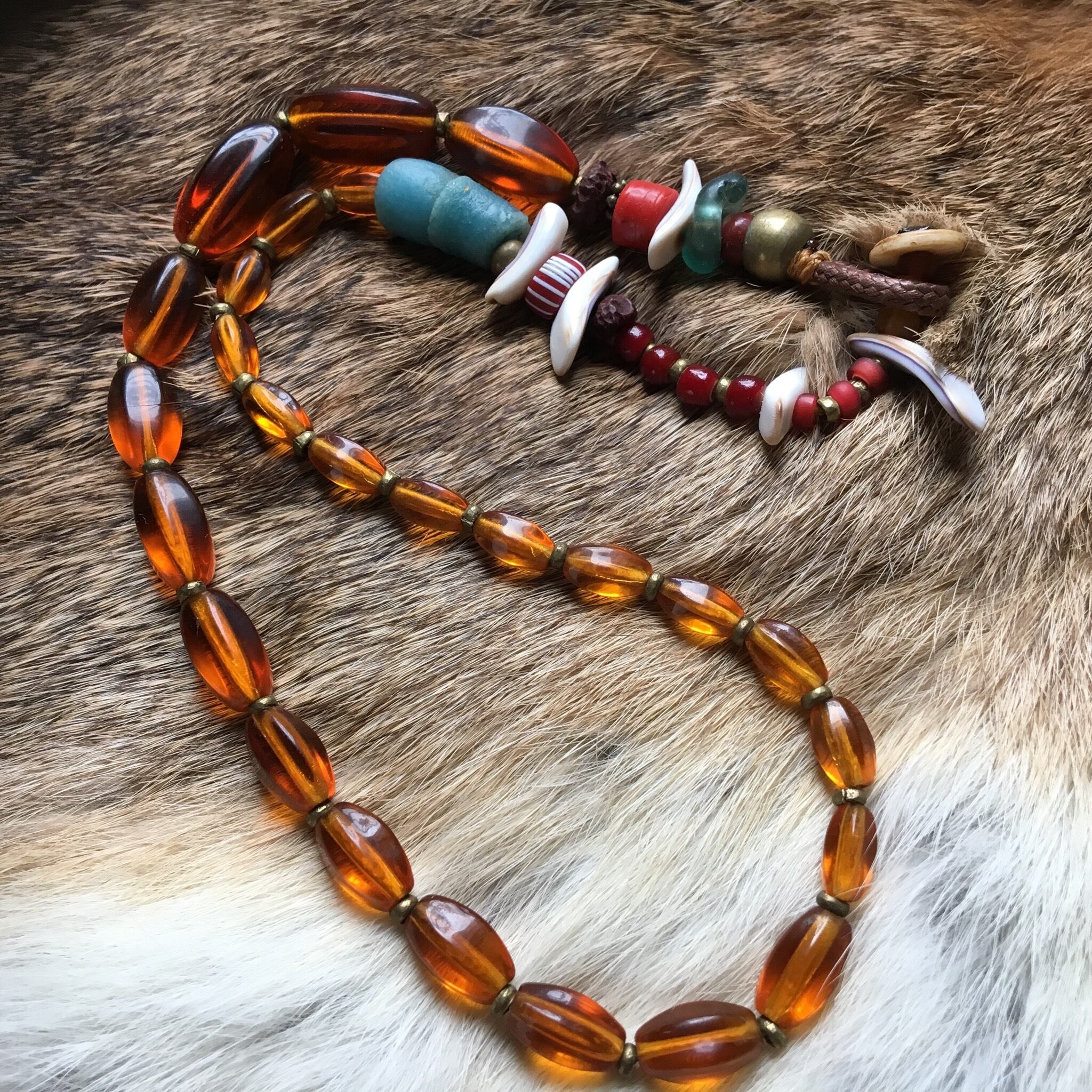 【No.93】ロイヤルブラウンが素敵 antique ボヘミアビーズ tribal ネックレス グーズベリー 貝 ホワイトハーツ ドゴン族 ブラス パウダーガラス