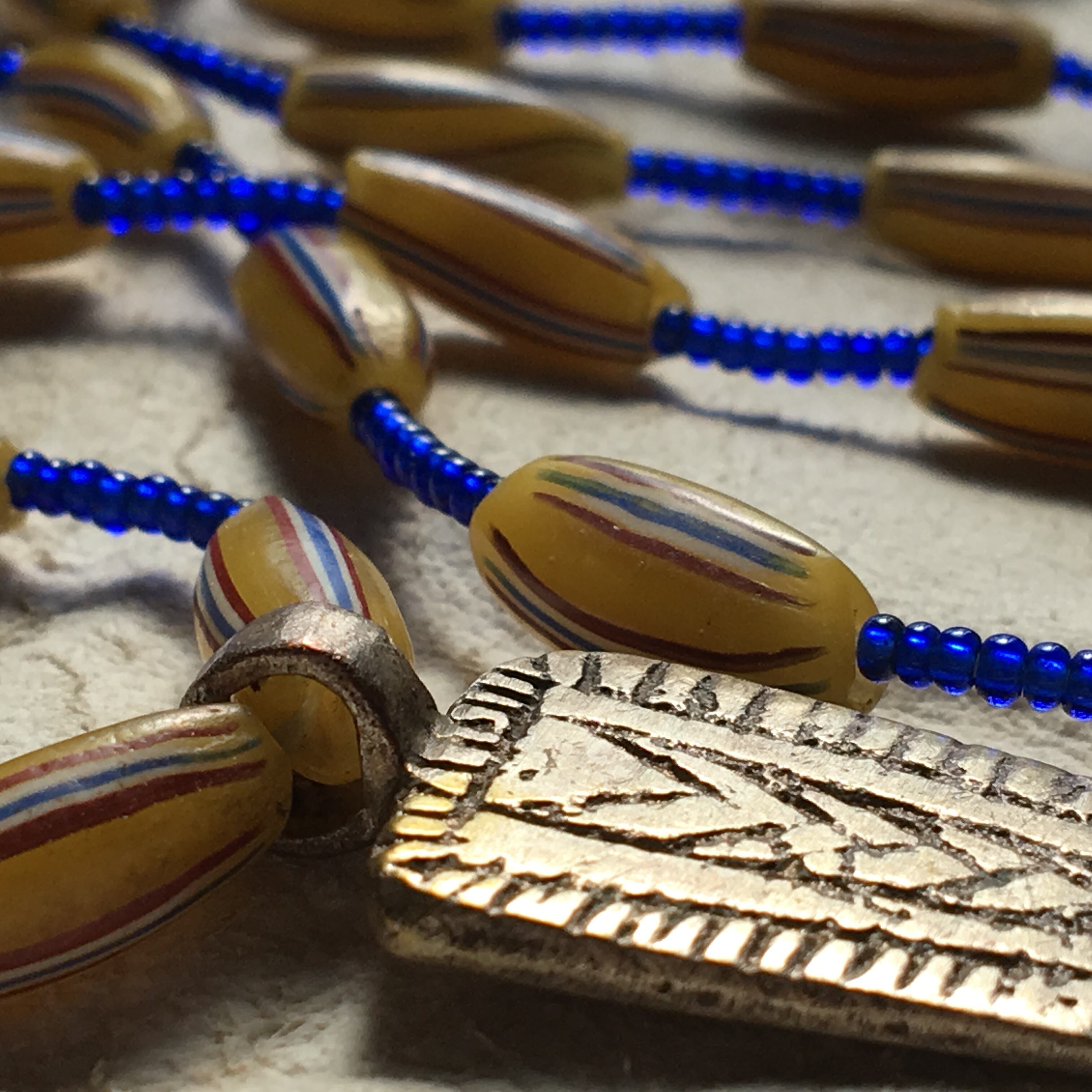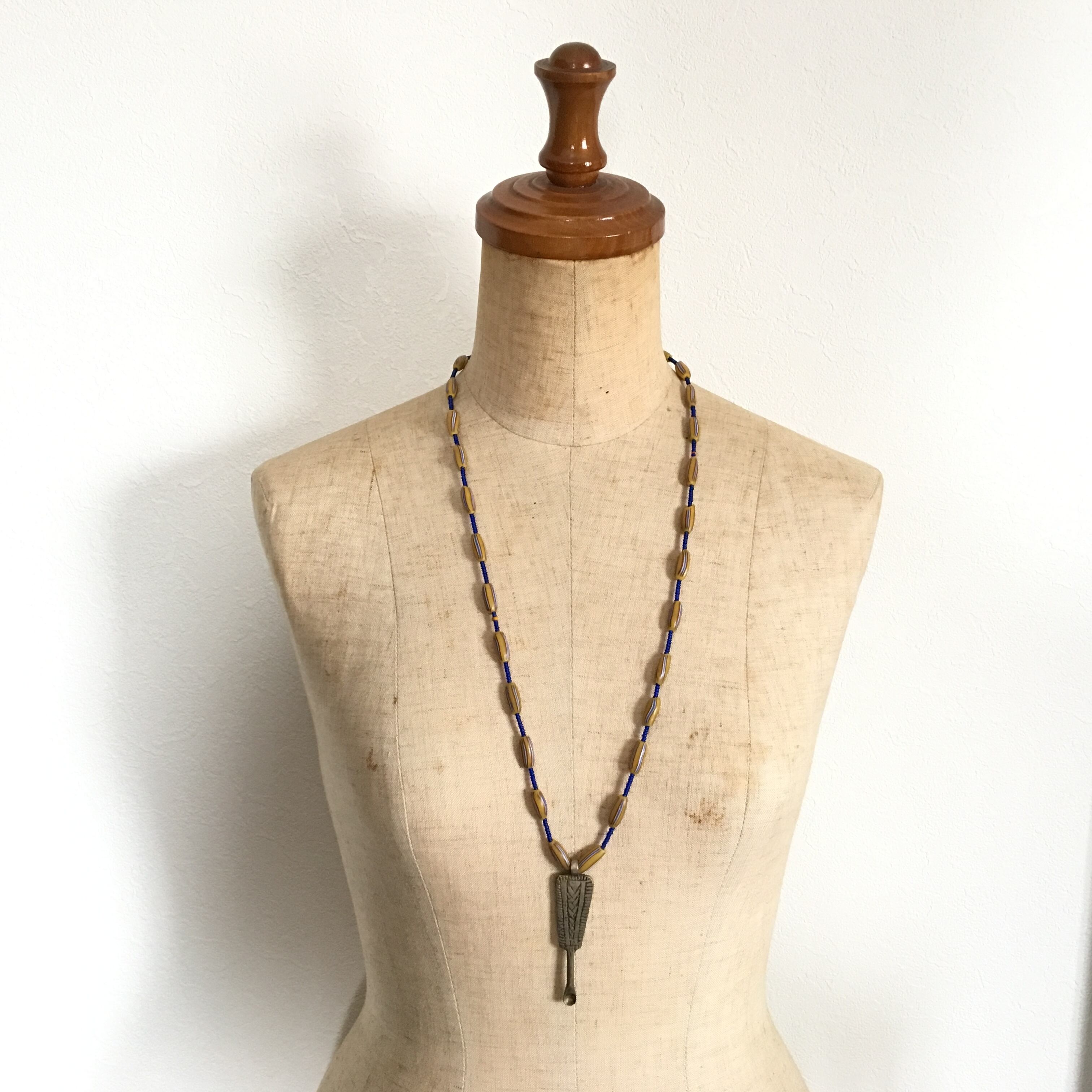 アンティークカンネビーズにシードビーズ、TOPはエチオピア耳かきニッケルシルバーを使用したネックレス作品。