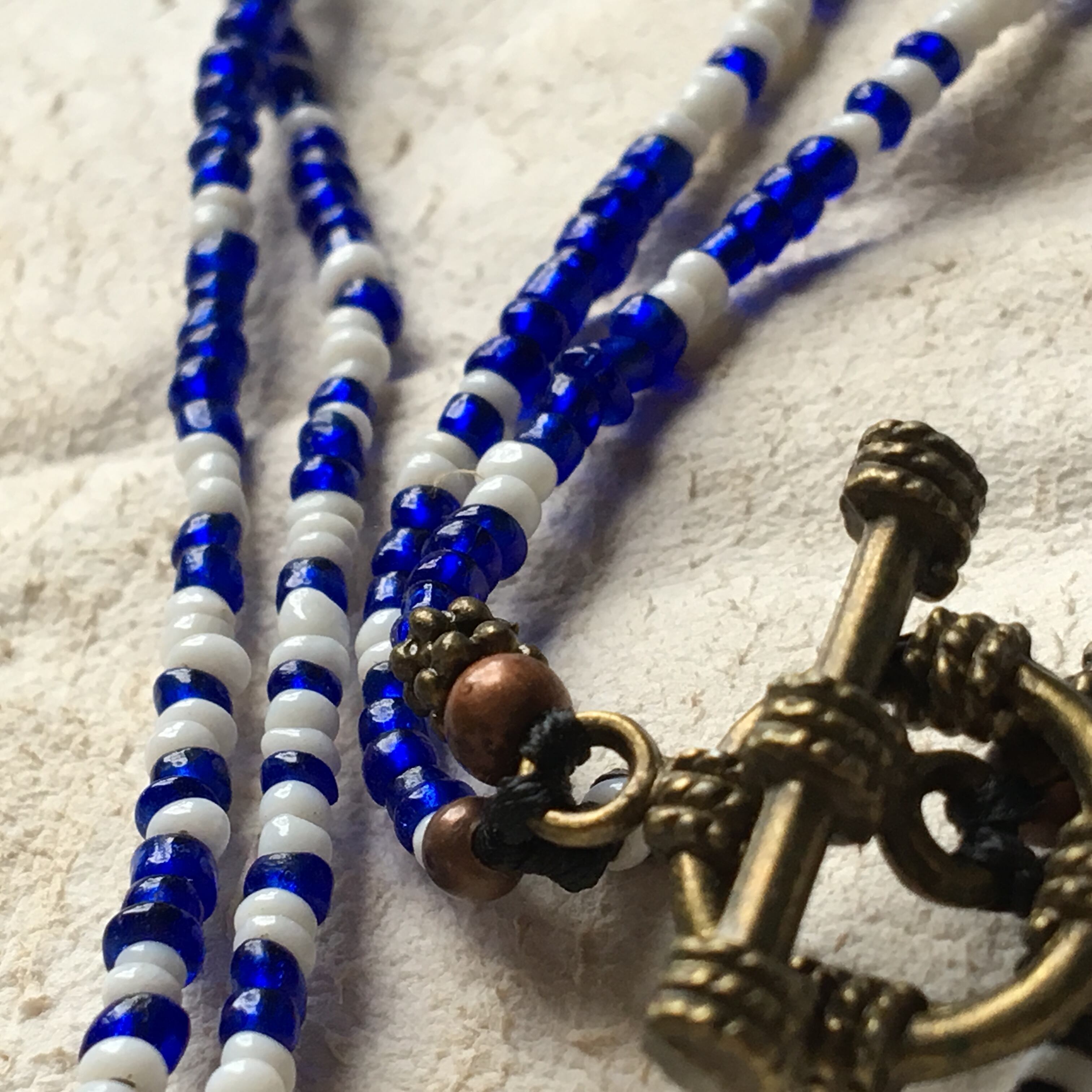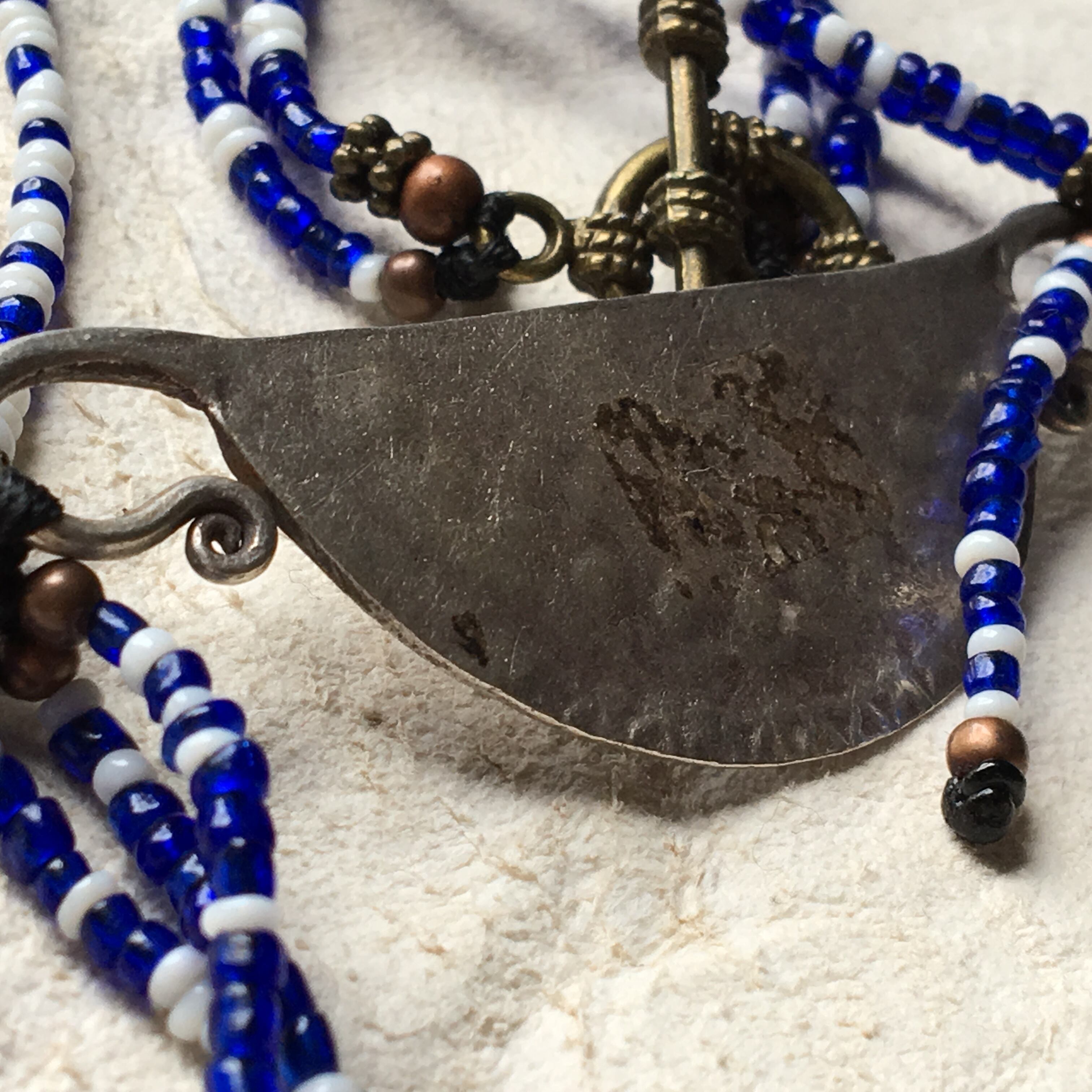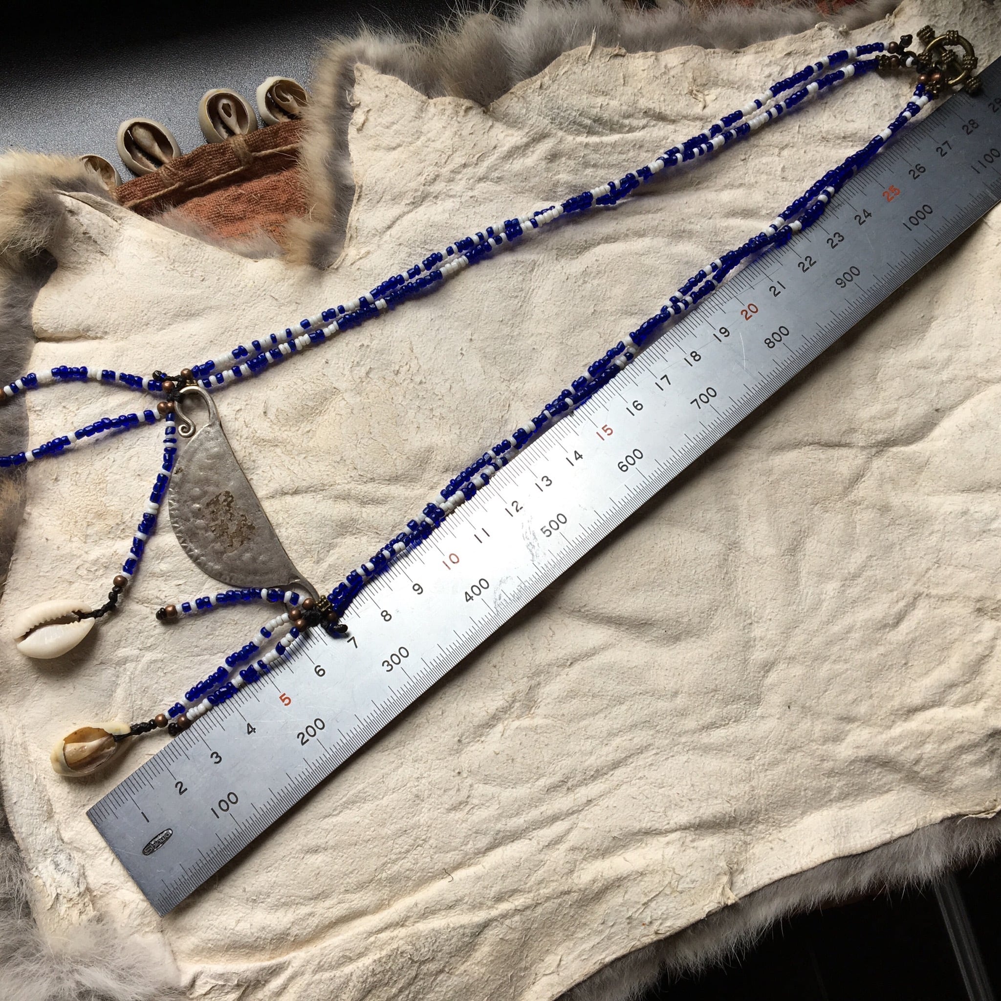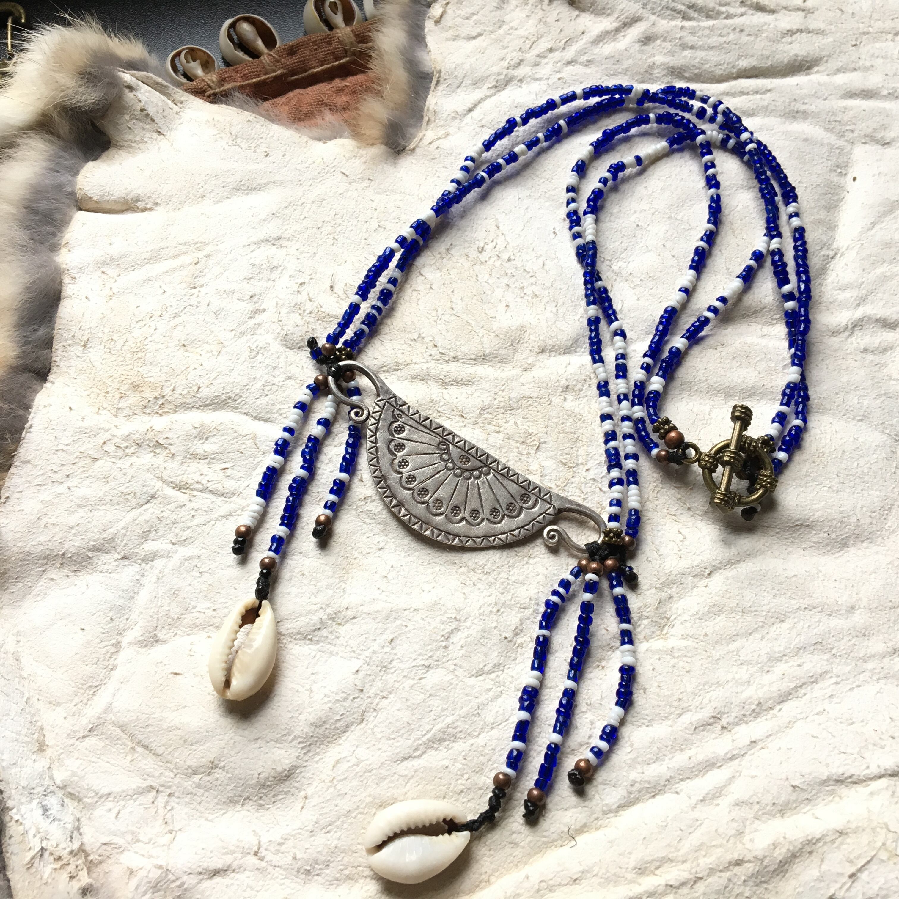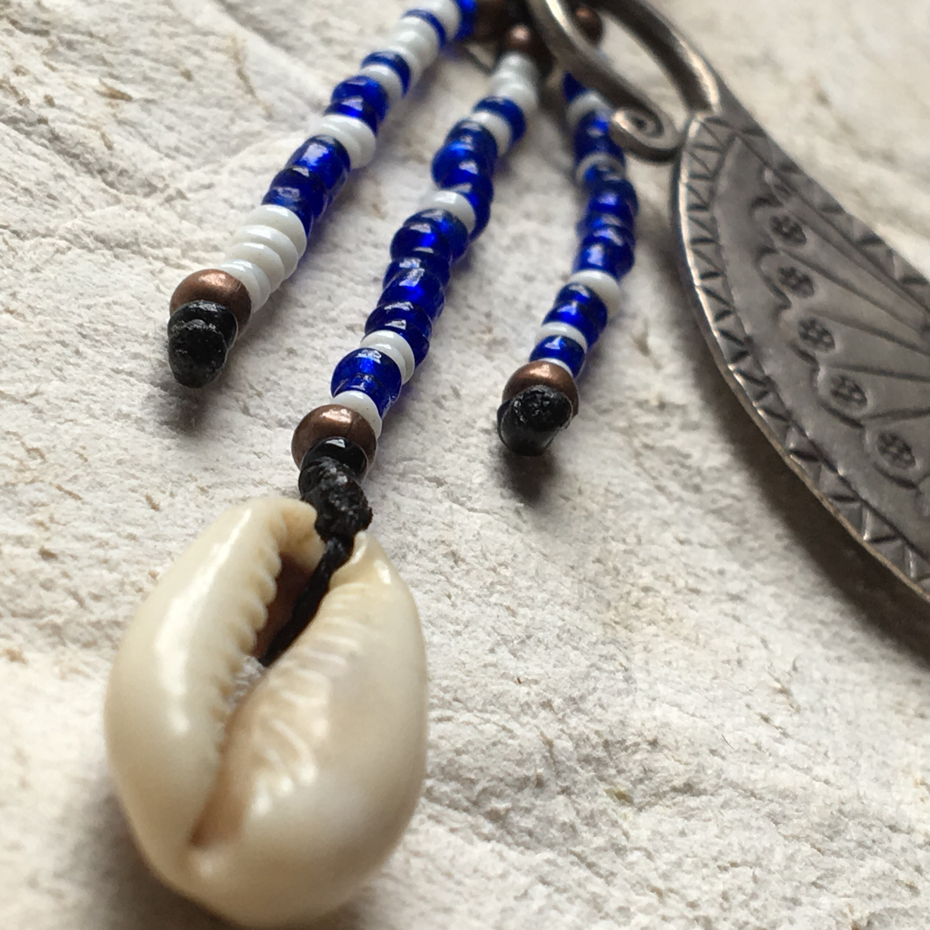 カレンシルバーTOPにアンティークシードビーズ、子安貝を使用したネックレス作品。