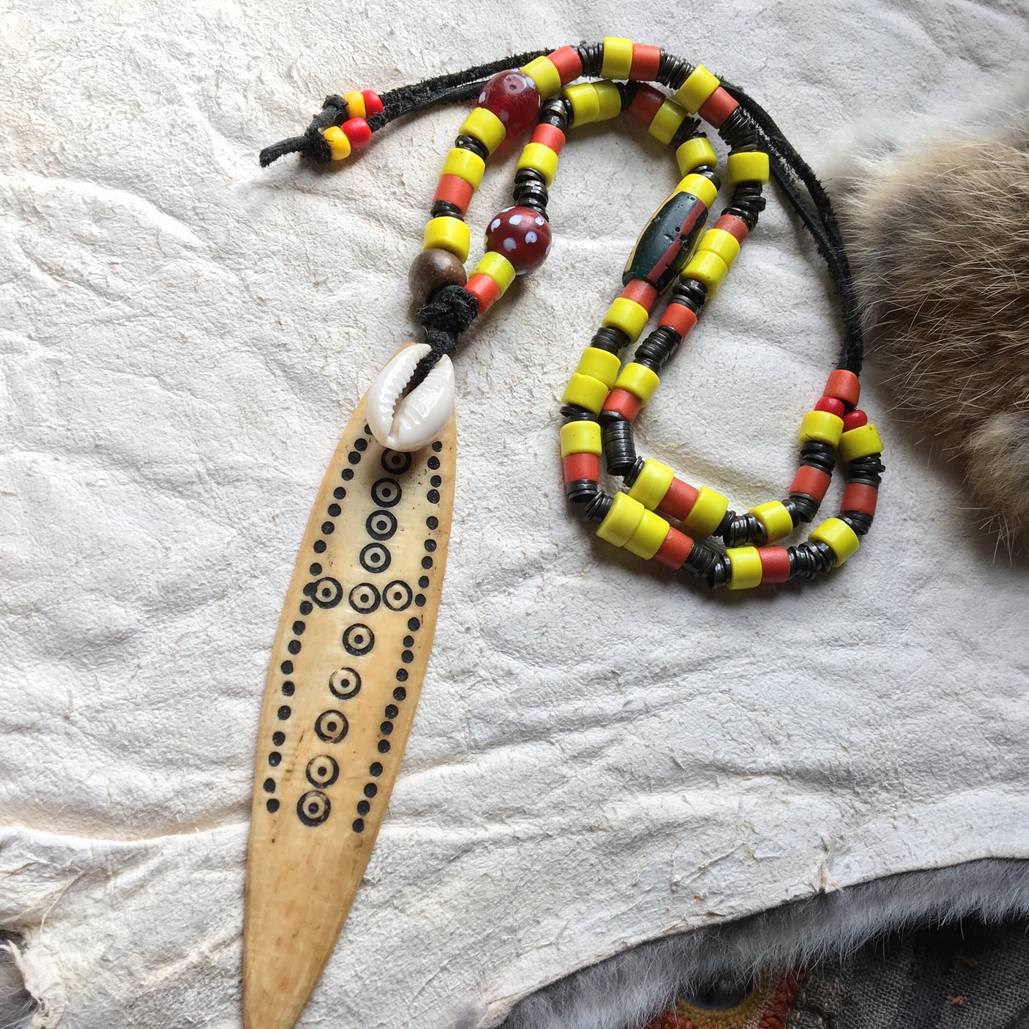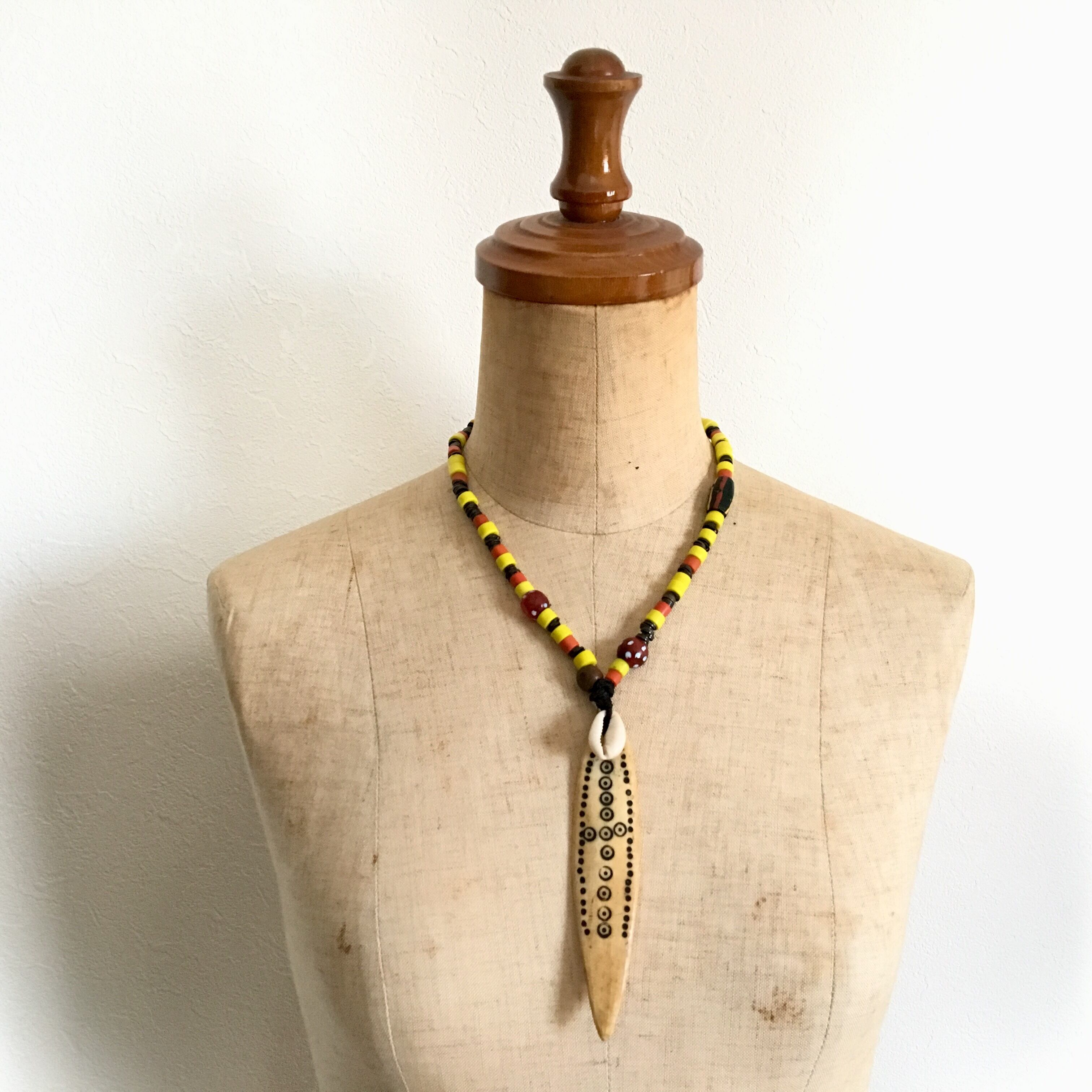 【No.191】トライバルネックレス 動物の骨オールドTOP アンティークビーズ スカンク 子安貝
