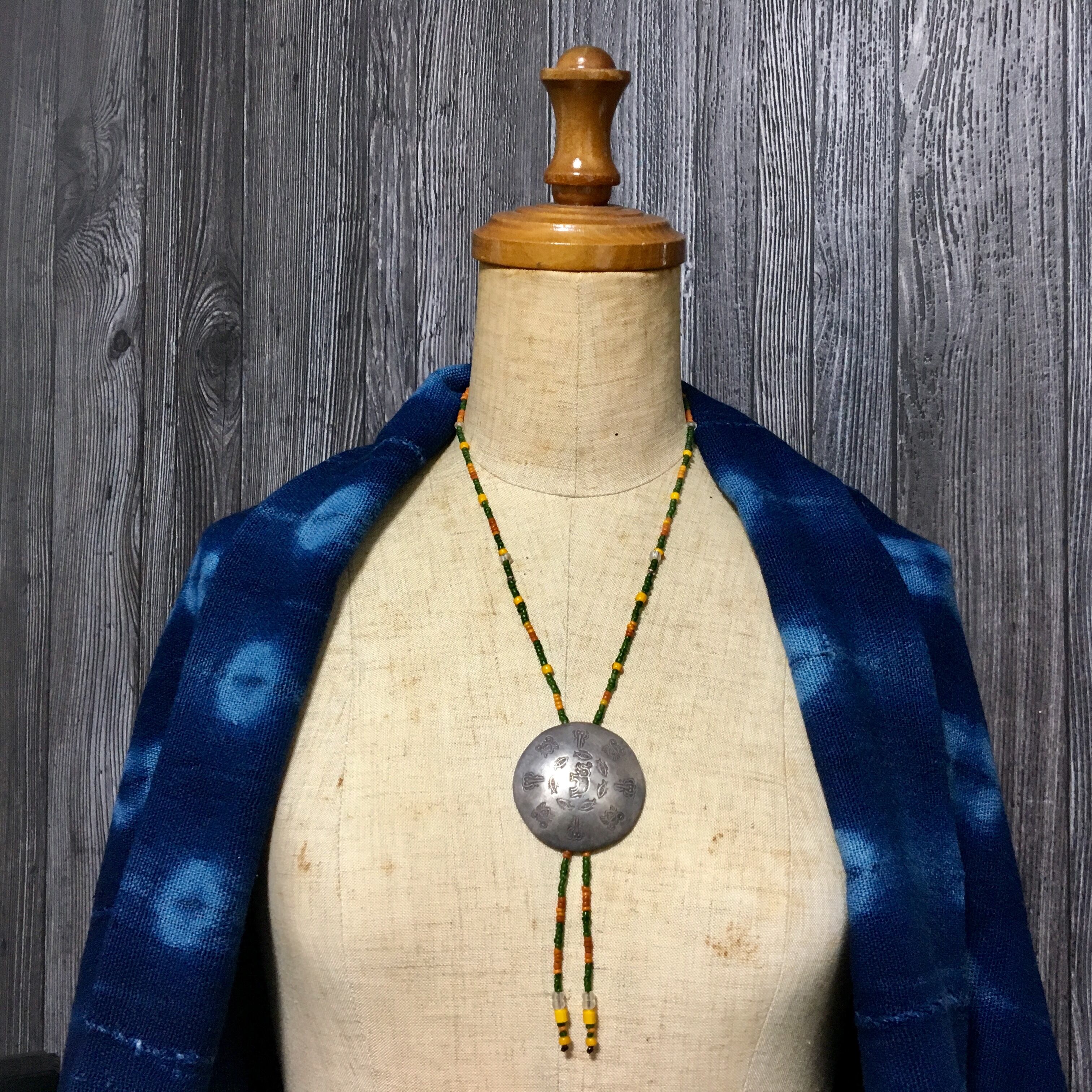 【No.207】民族衣装に相性抜群 カレンシルバーTOP antique シードビーズ ネックレス