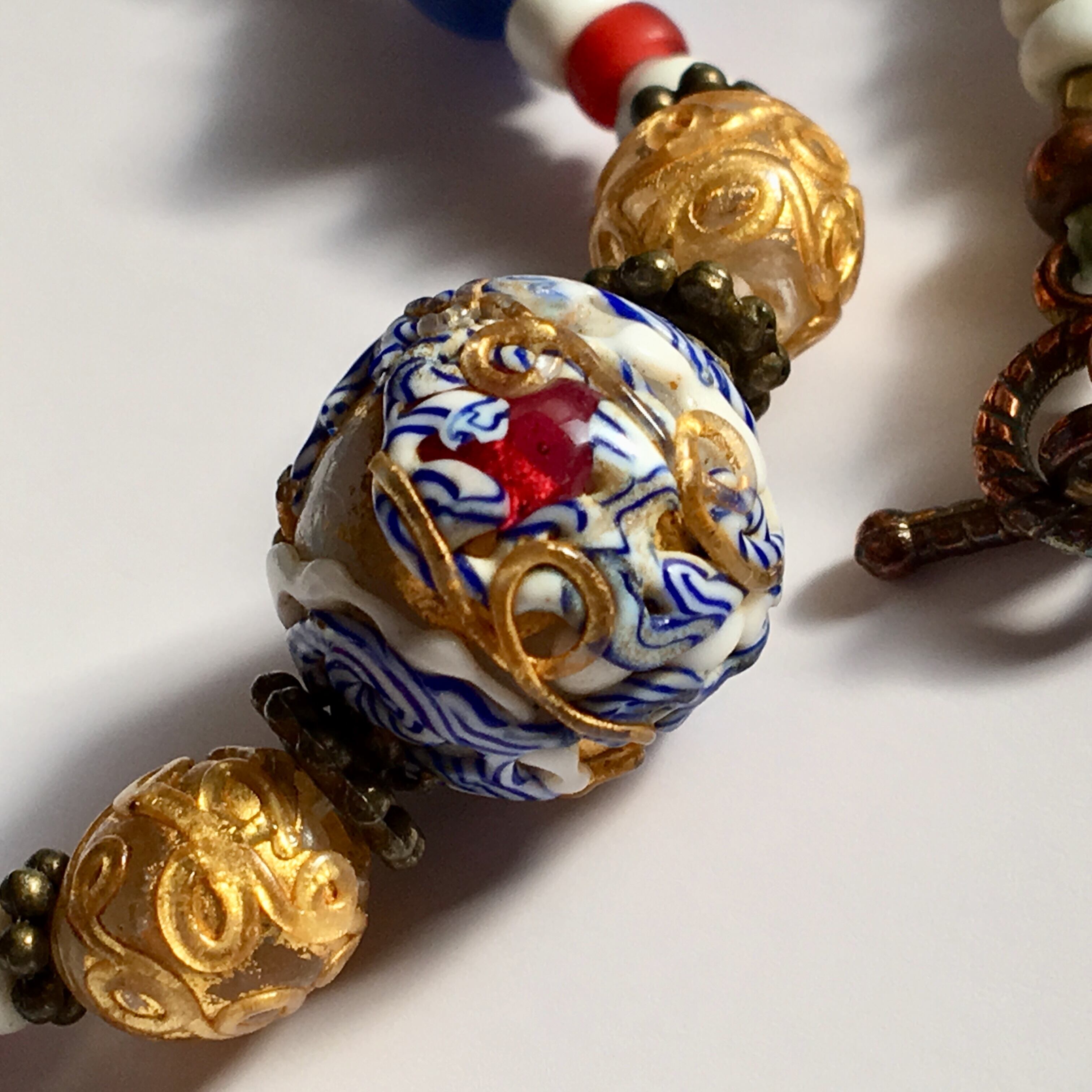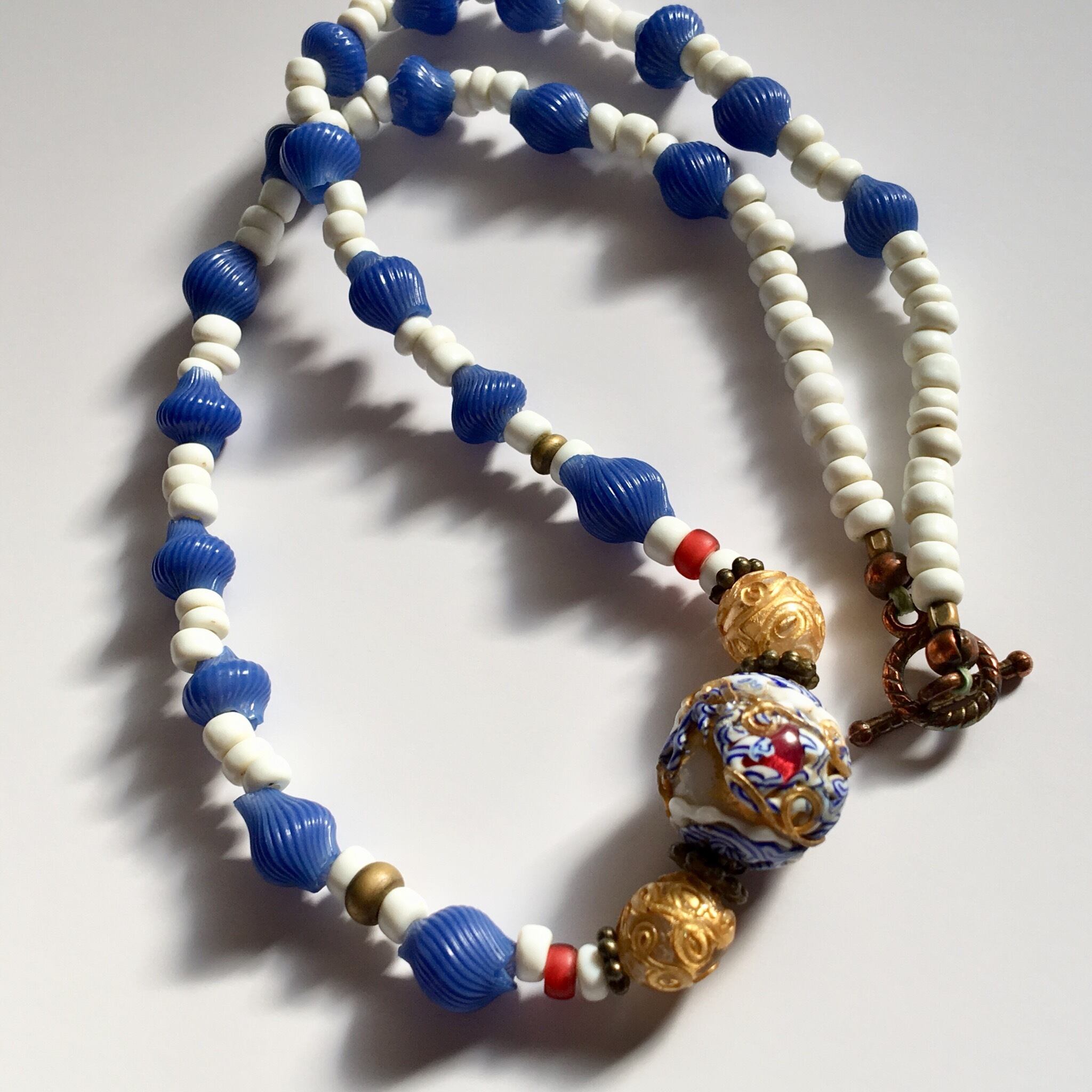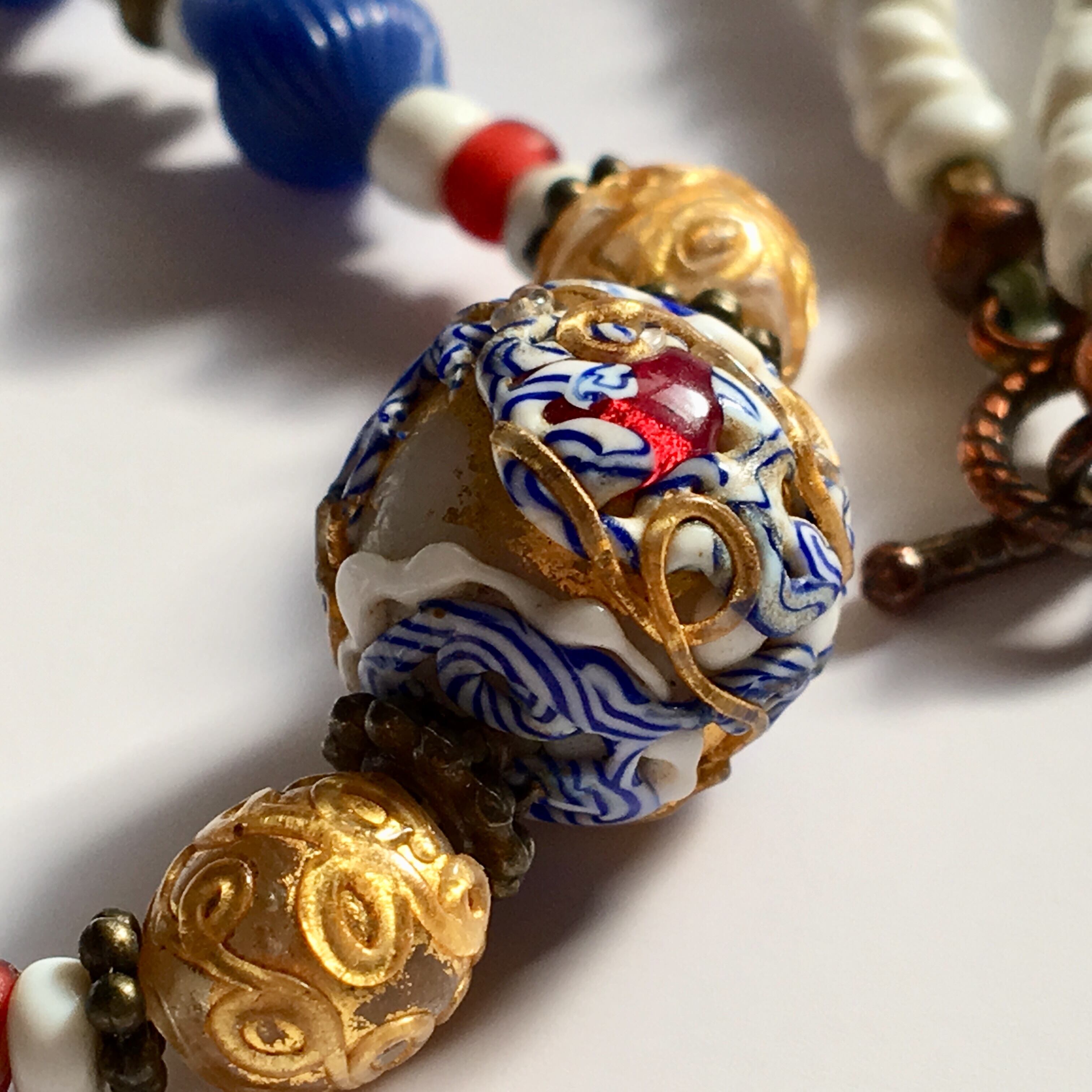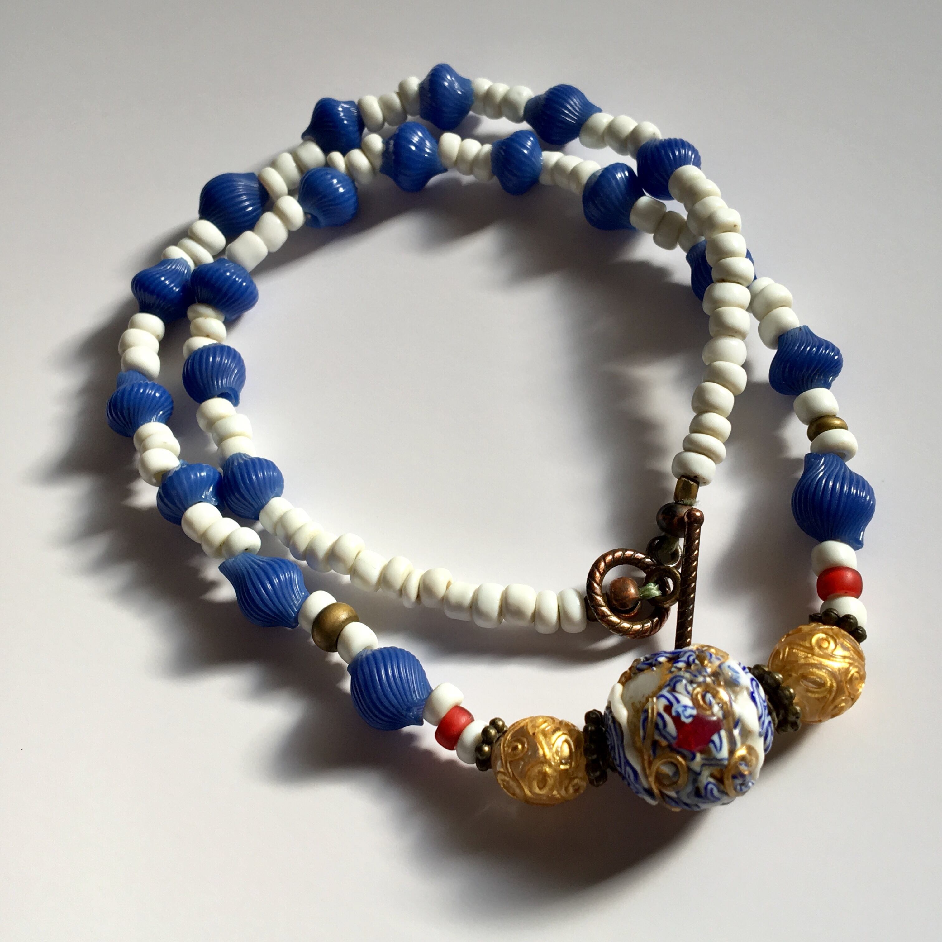 【No.217】職人指焦がし antique ヴェネチア ウェディングケーキ 希少 レア 吹きガラス ロシアンブルー 豪華 ネックレス