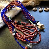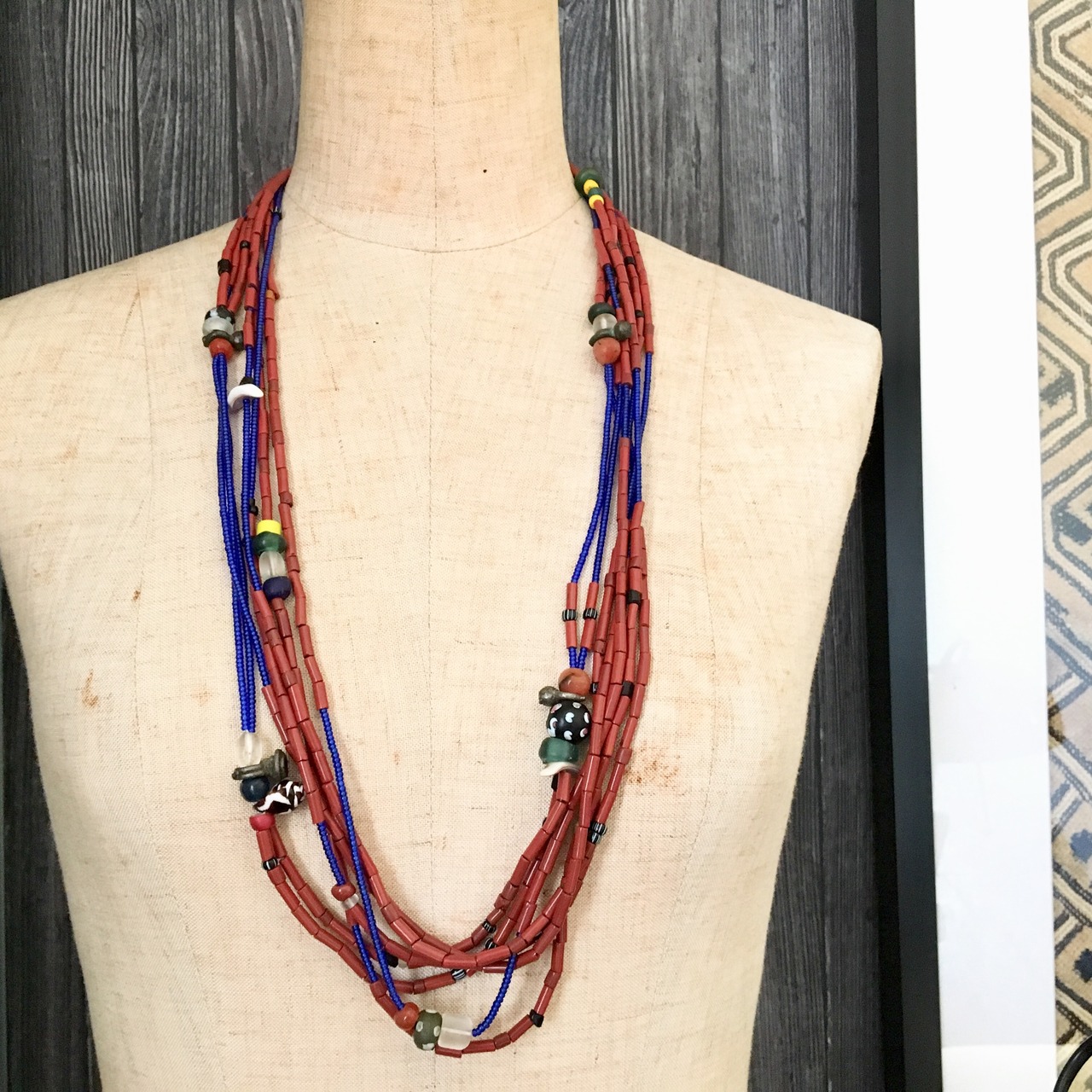 民族ファッションに相性抜群‼︎長めの多連型トライバルネックレス作品。