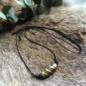 チン族のオパール化した椰子の木化石ビンテージプンテックビーズ、ビルマビーズ、現代ブラスビーズを使用したネックレス作品。