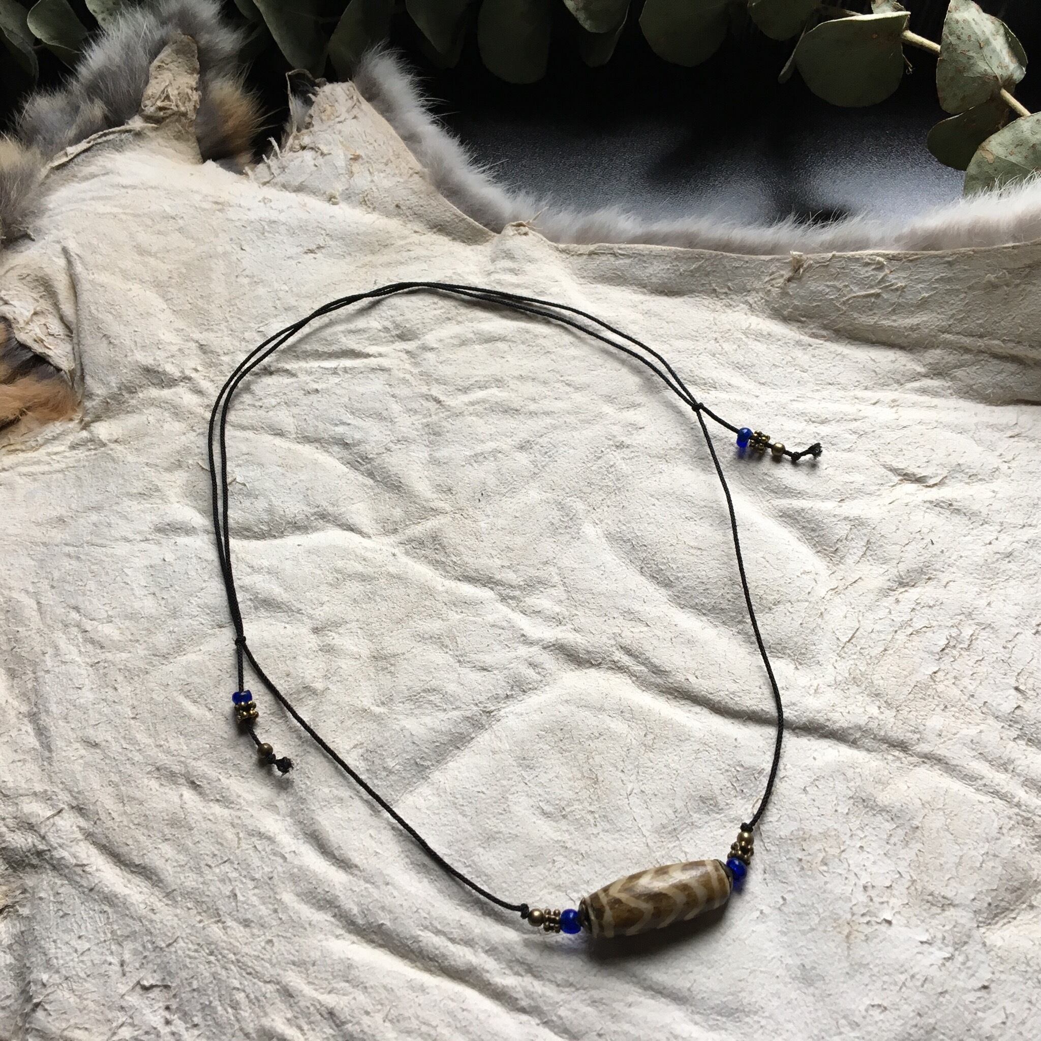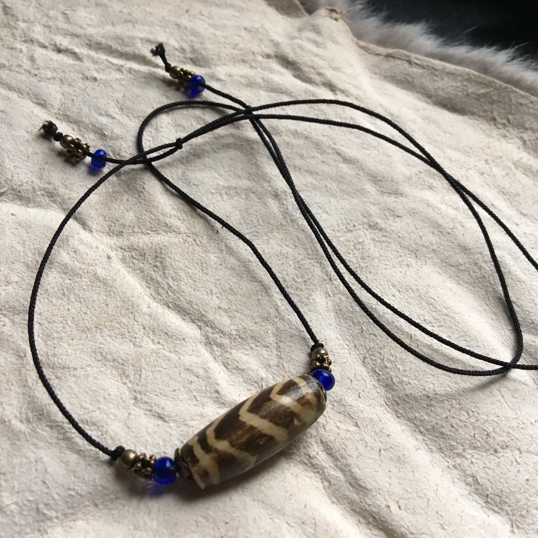 【No.316】虎柄 プンテックビーズ ビルマ ビーズ ブラス ネックレス