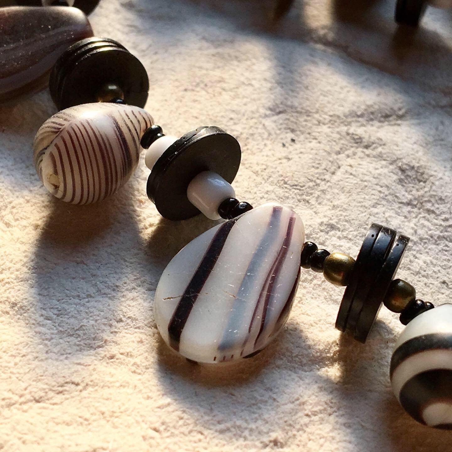 【No.326】antique モード ボヘミアン zebra ウェディングビーズ 電球玉 レコード盤ビーズ トライバル ネックレス