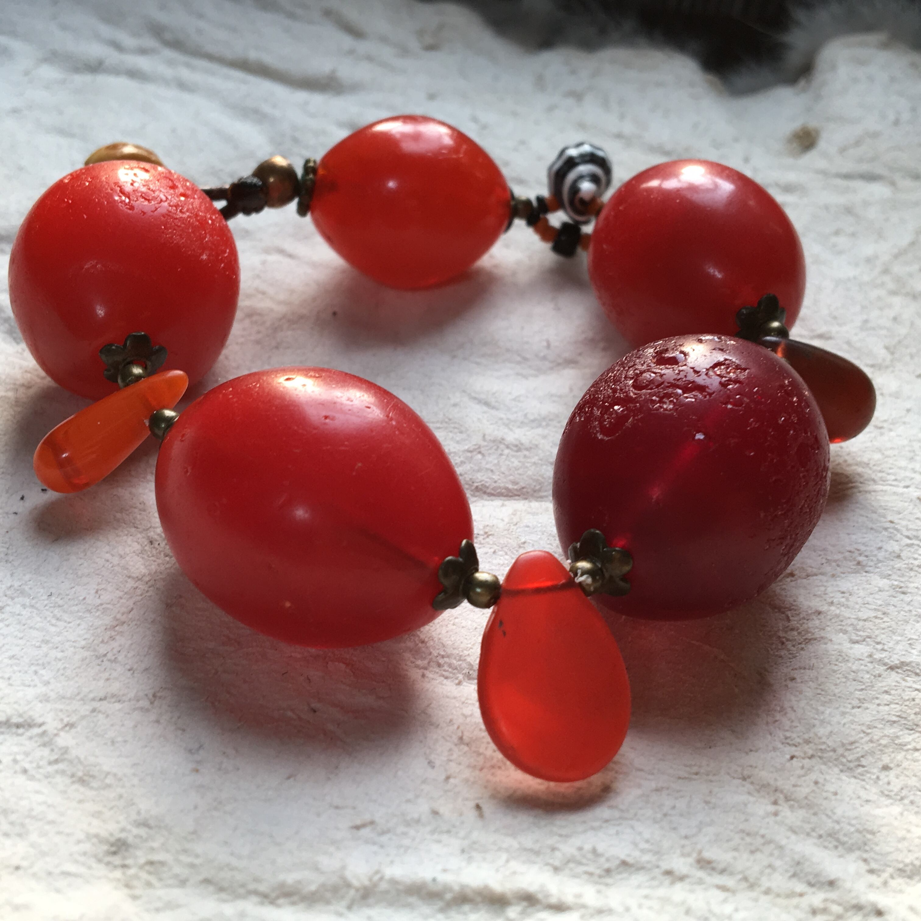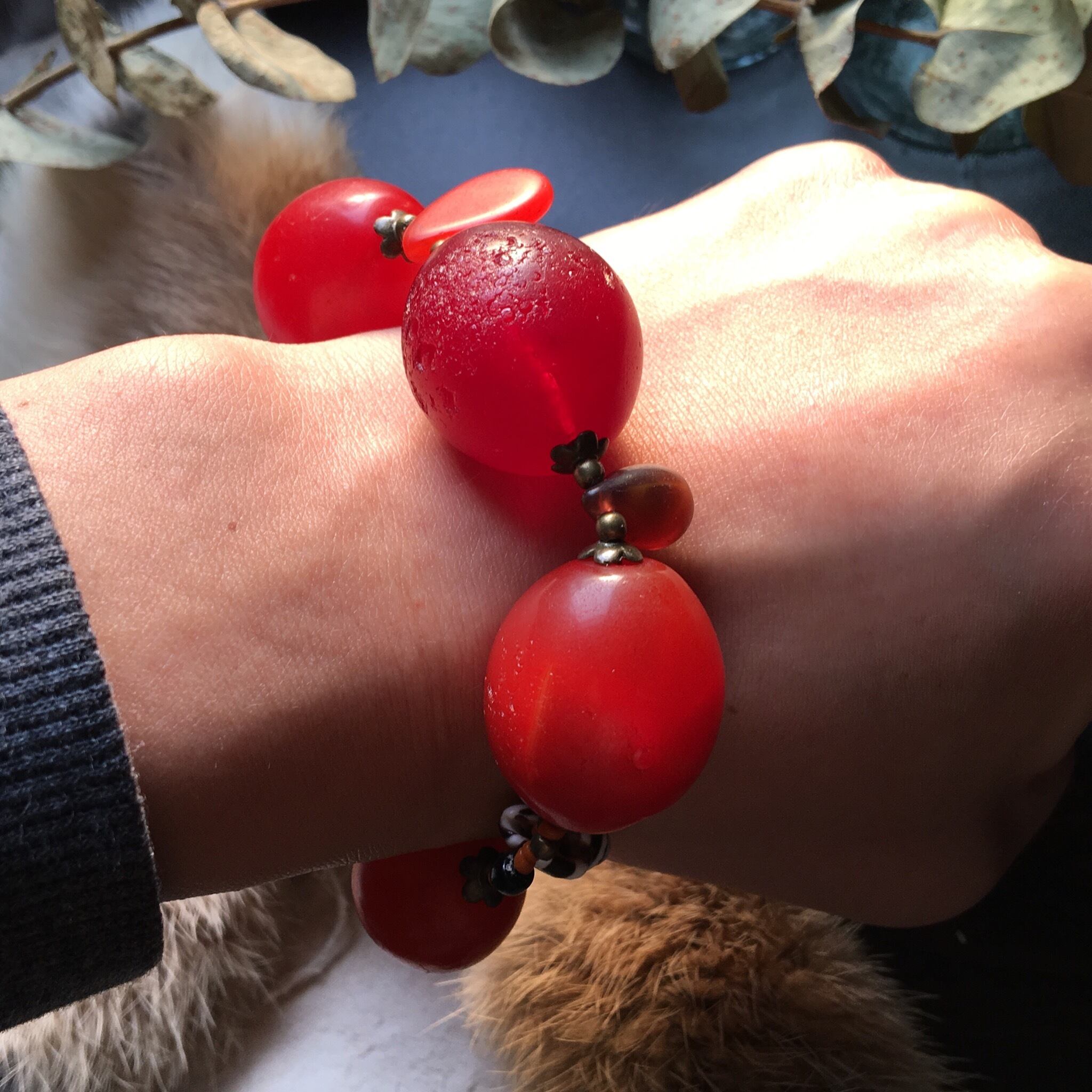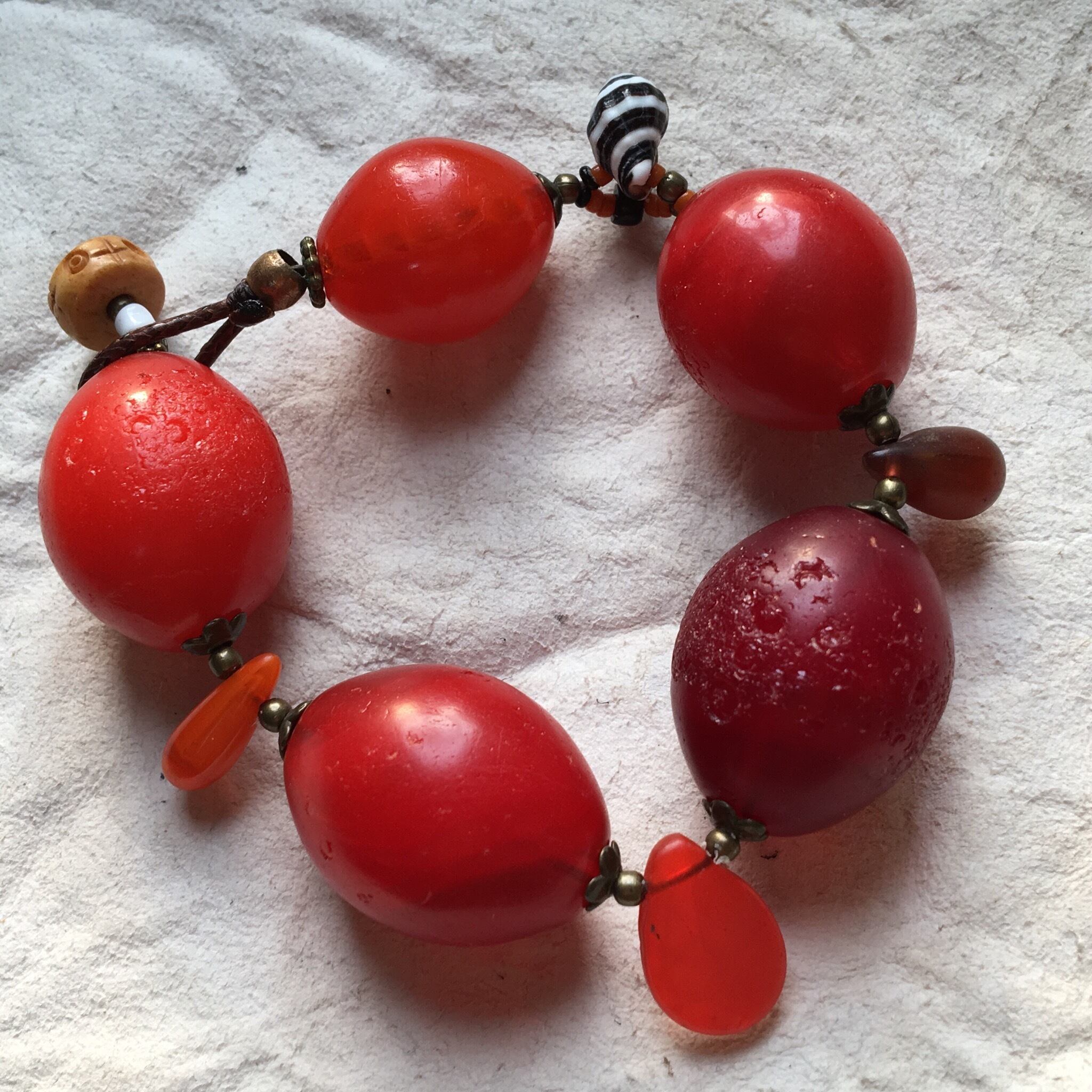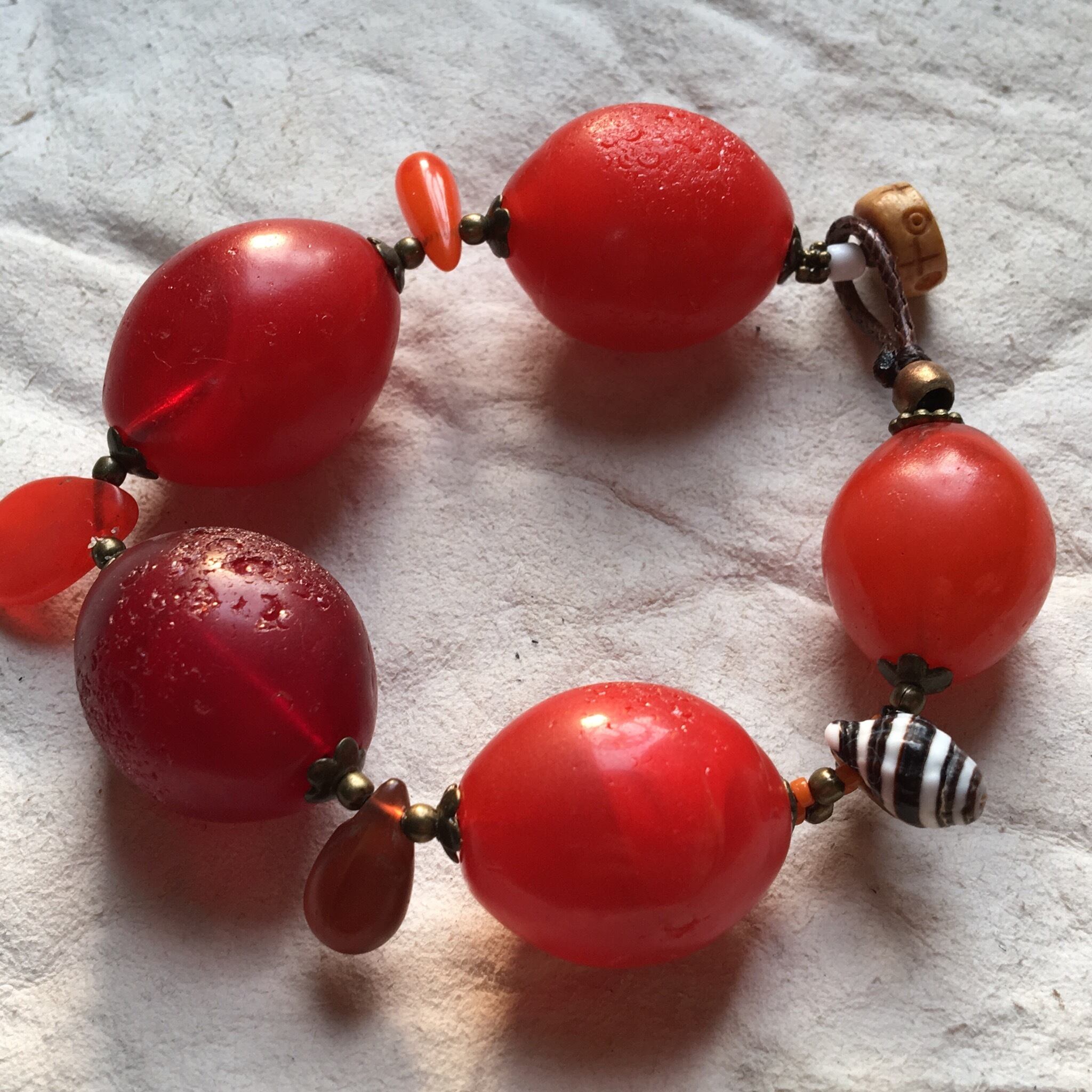 【No.328】BIG 迫力抜群 antique ボヘミアン チェリー ウェディングビーズビーズ 貝殻 シードビーズ トライバルブレスレット