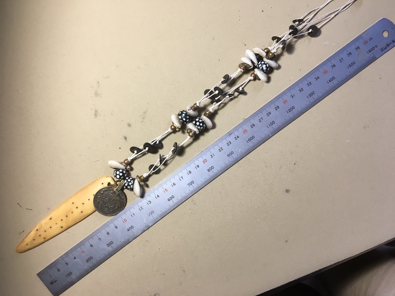 【No.362】オールド アフガニスタンコイン ボーンペンダント 護符 アンティーク サウザンドアイ 子安貝 レコード盤 麻紐 ネックレス
