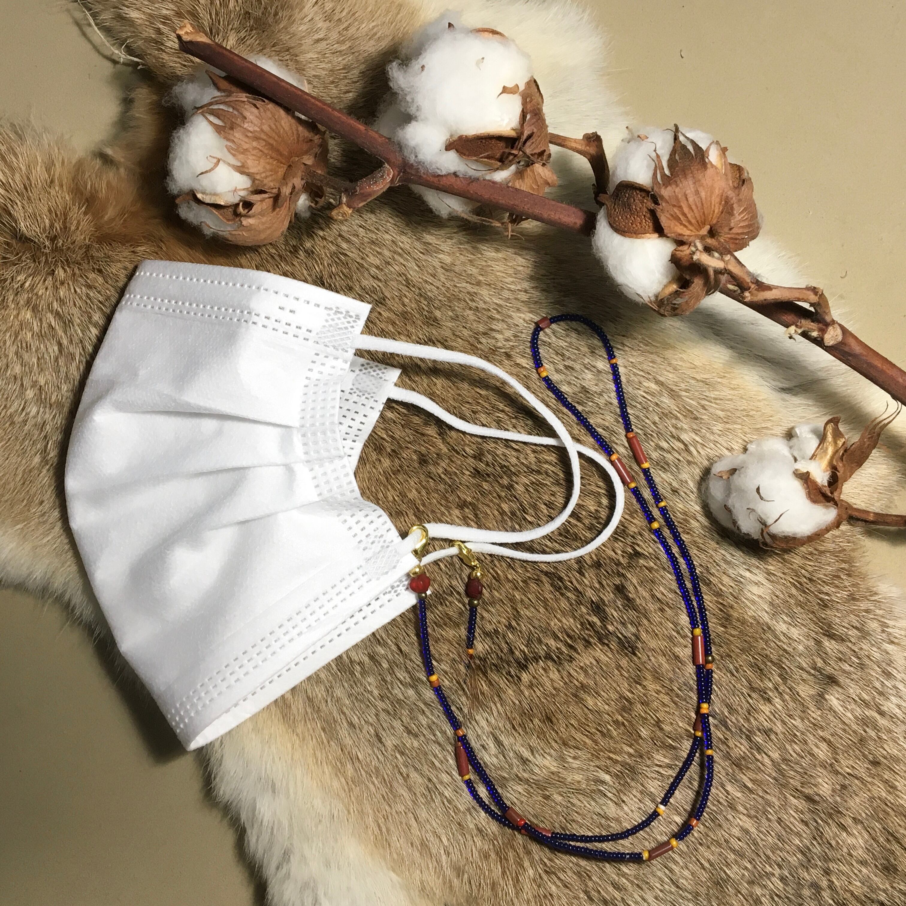 毎日のマスク生活をお洒落に楽しむ機能性アンティークビーズストラップネックレス。
