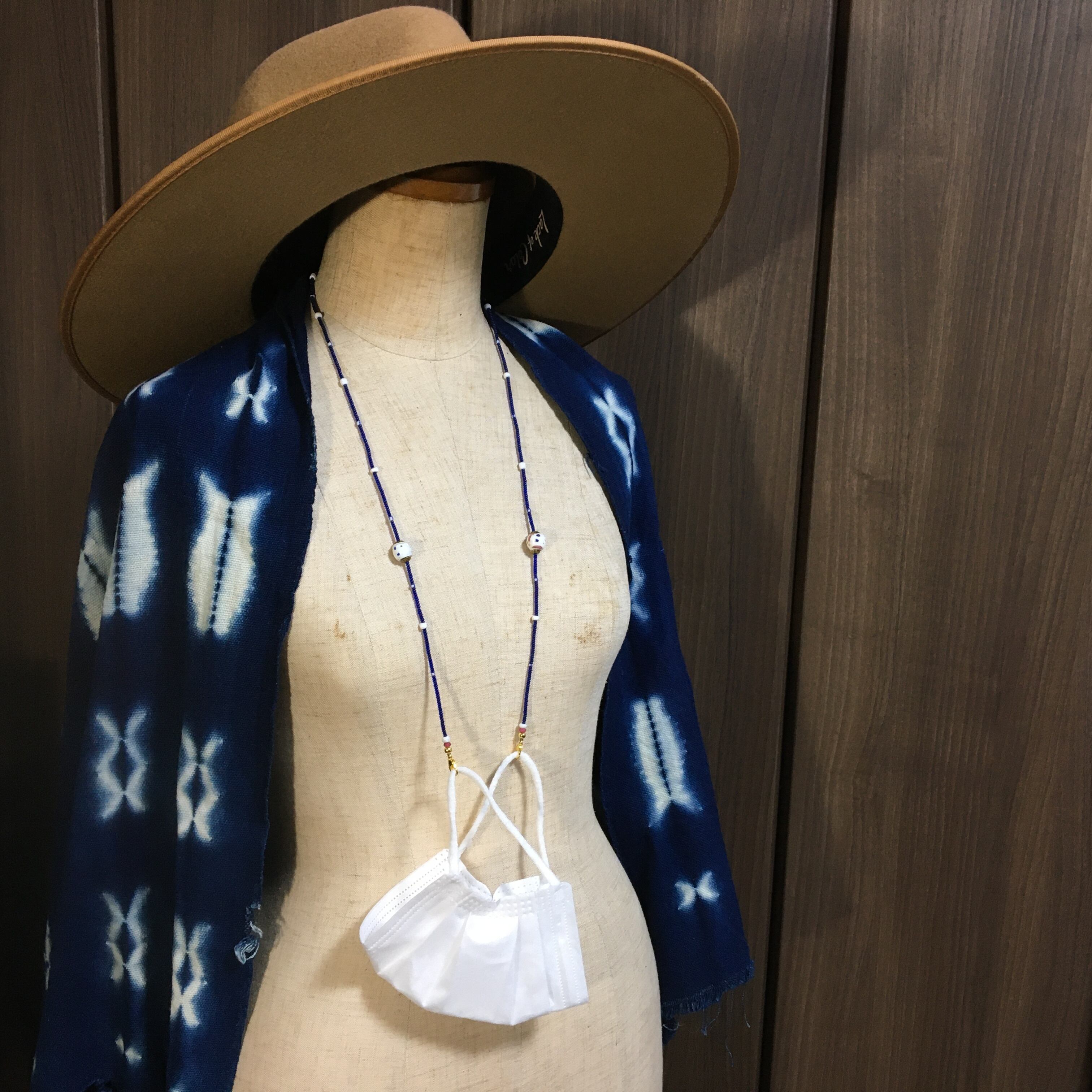 毎日のマスク生活をお洒落に楽しむ機能性アンティークビーズストラップネックレス。