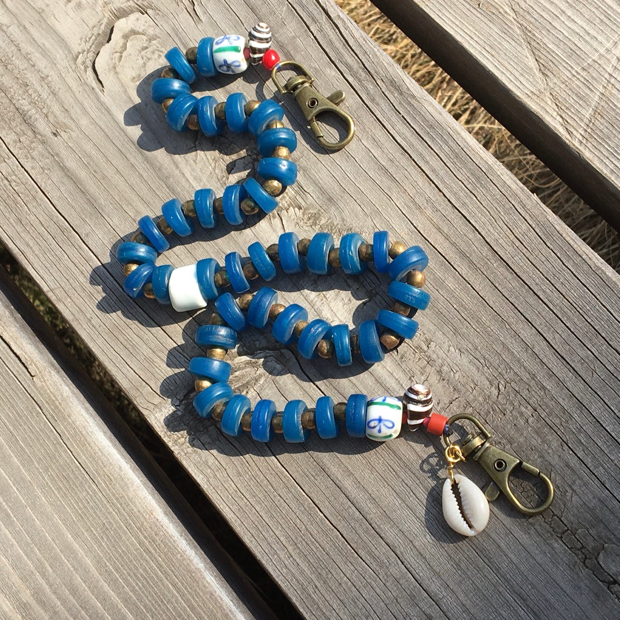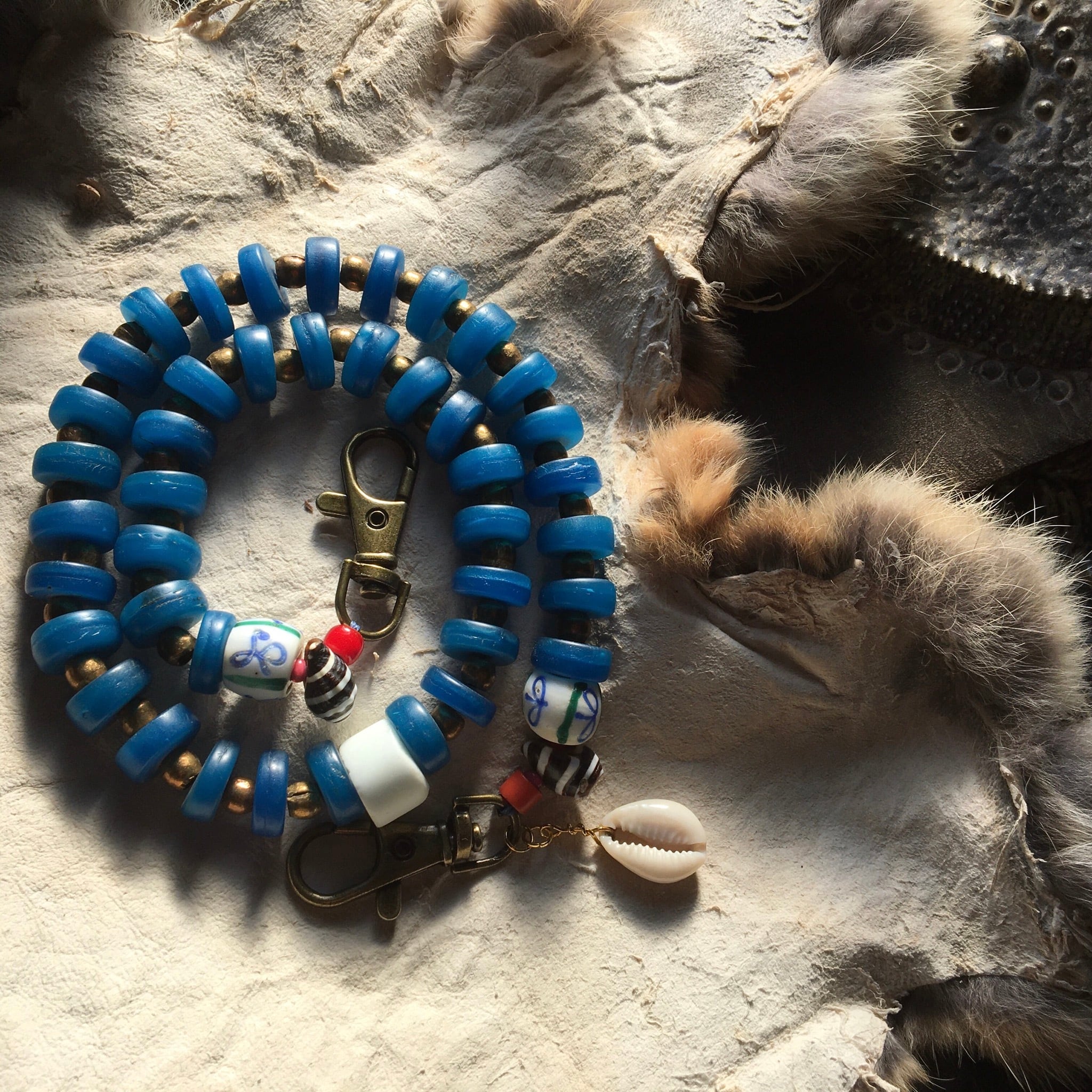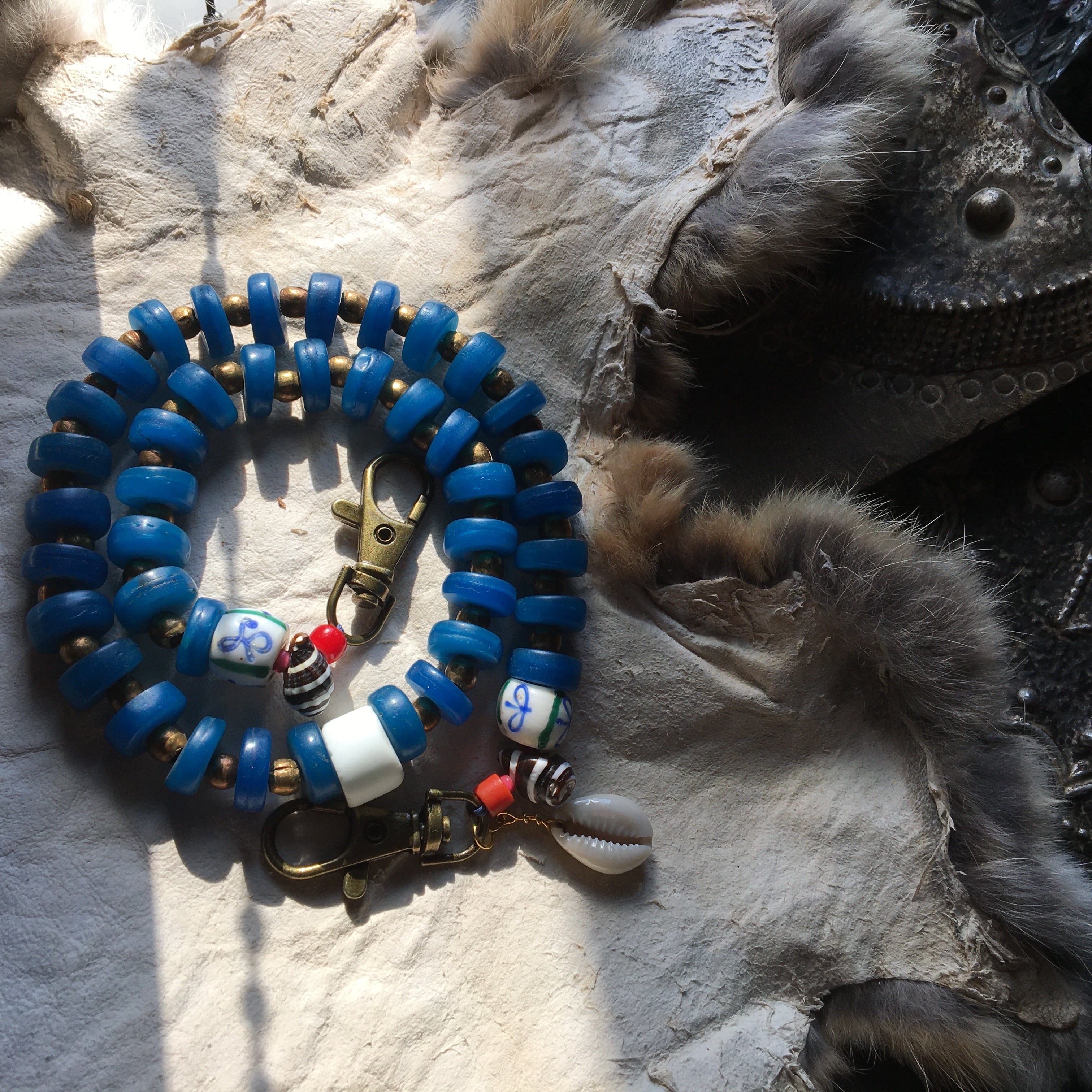 【No.419】ウォレットチェーン antique ボヘミアン コバルトブルー ファンシー ホワイトハーツ