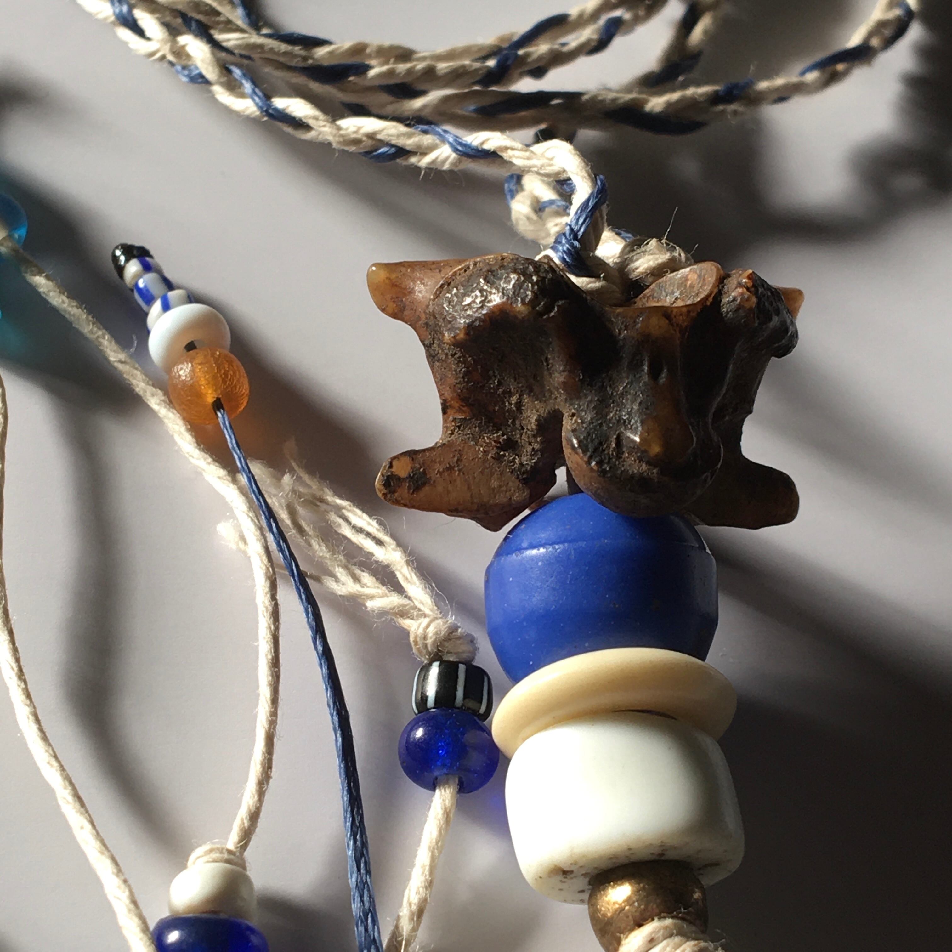 【No.453】●龍神 希少アンティーク ネパール 特大 蛇骨 ボヘミア プロッサービーズ ベネチアホワイトビーズ 麻紐 ネックレス とんぼ玉 スネークボーン