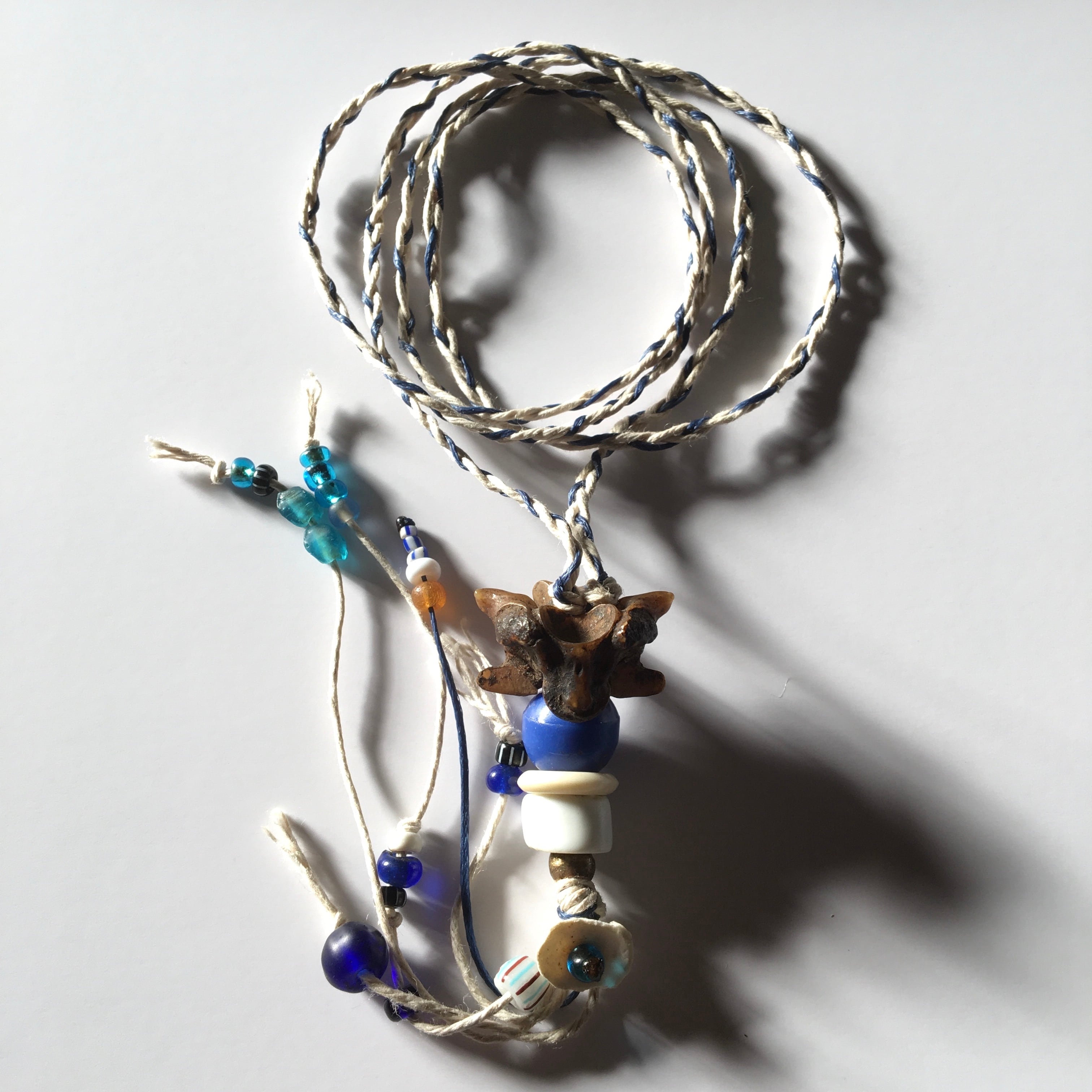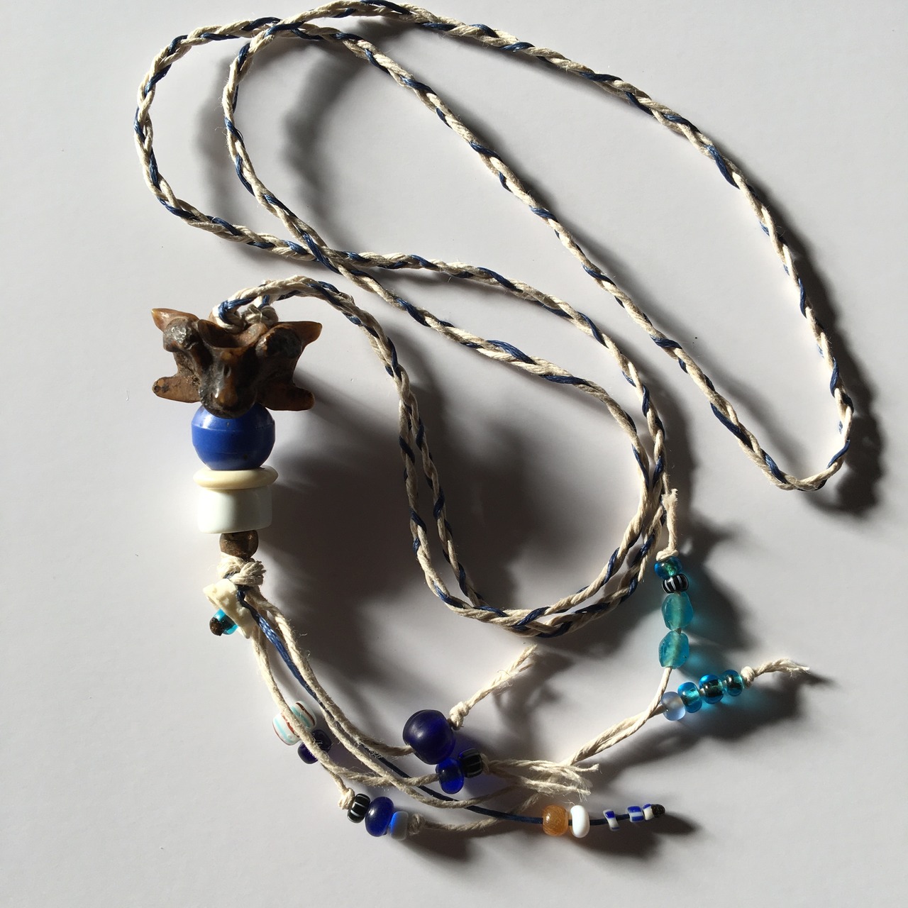 麻紐にロウビキ紐を三つ編みに仕上げたトライバル龍神ネックレス作品。