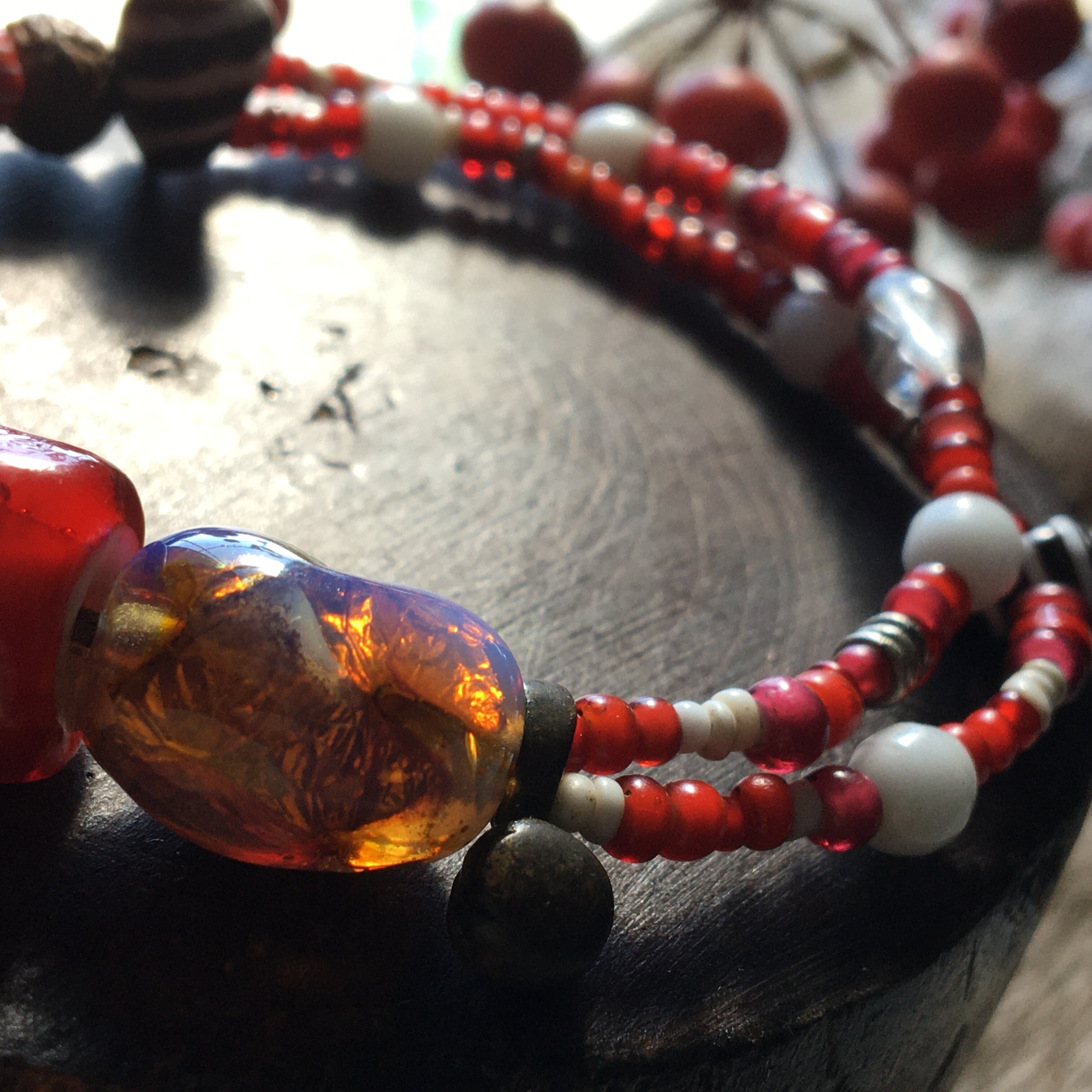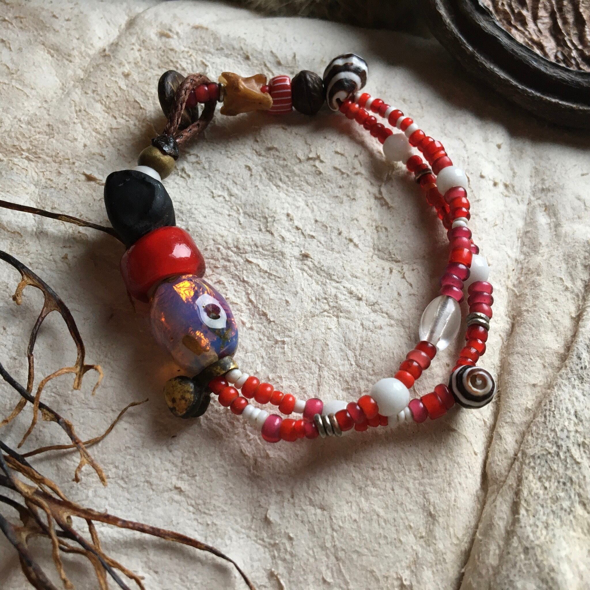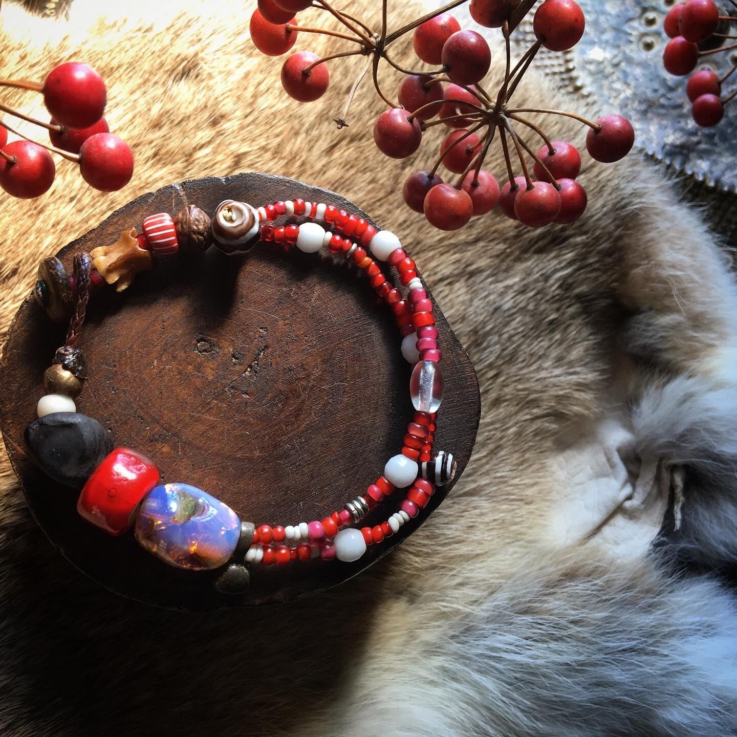 アフリカアンティークの蛇骨を使用したスペシャル2連ブレスレット作品。