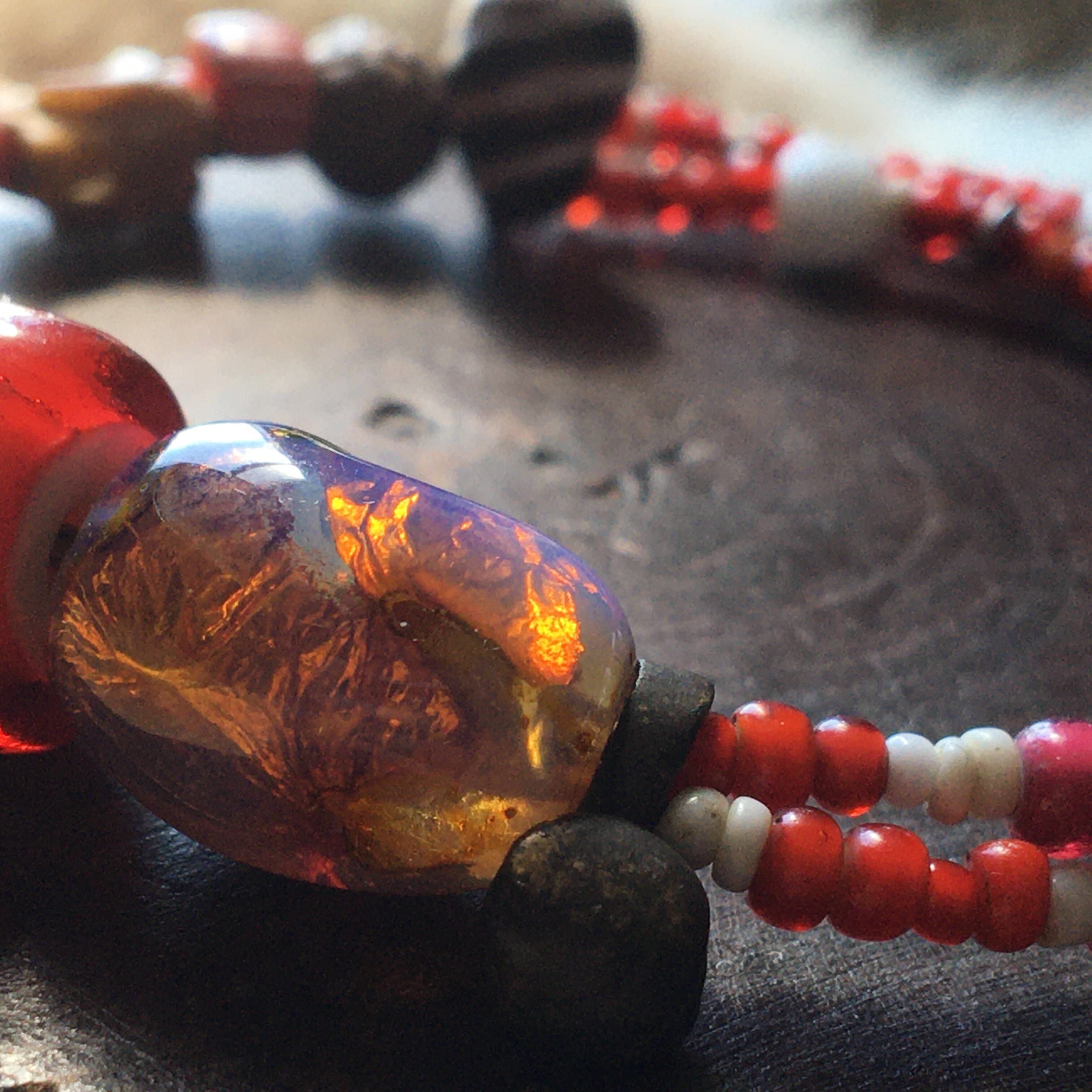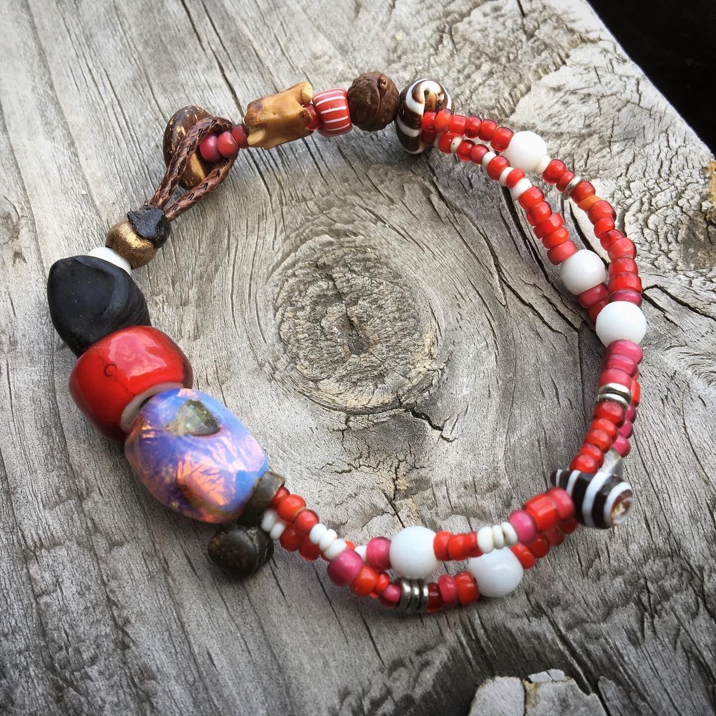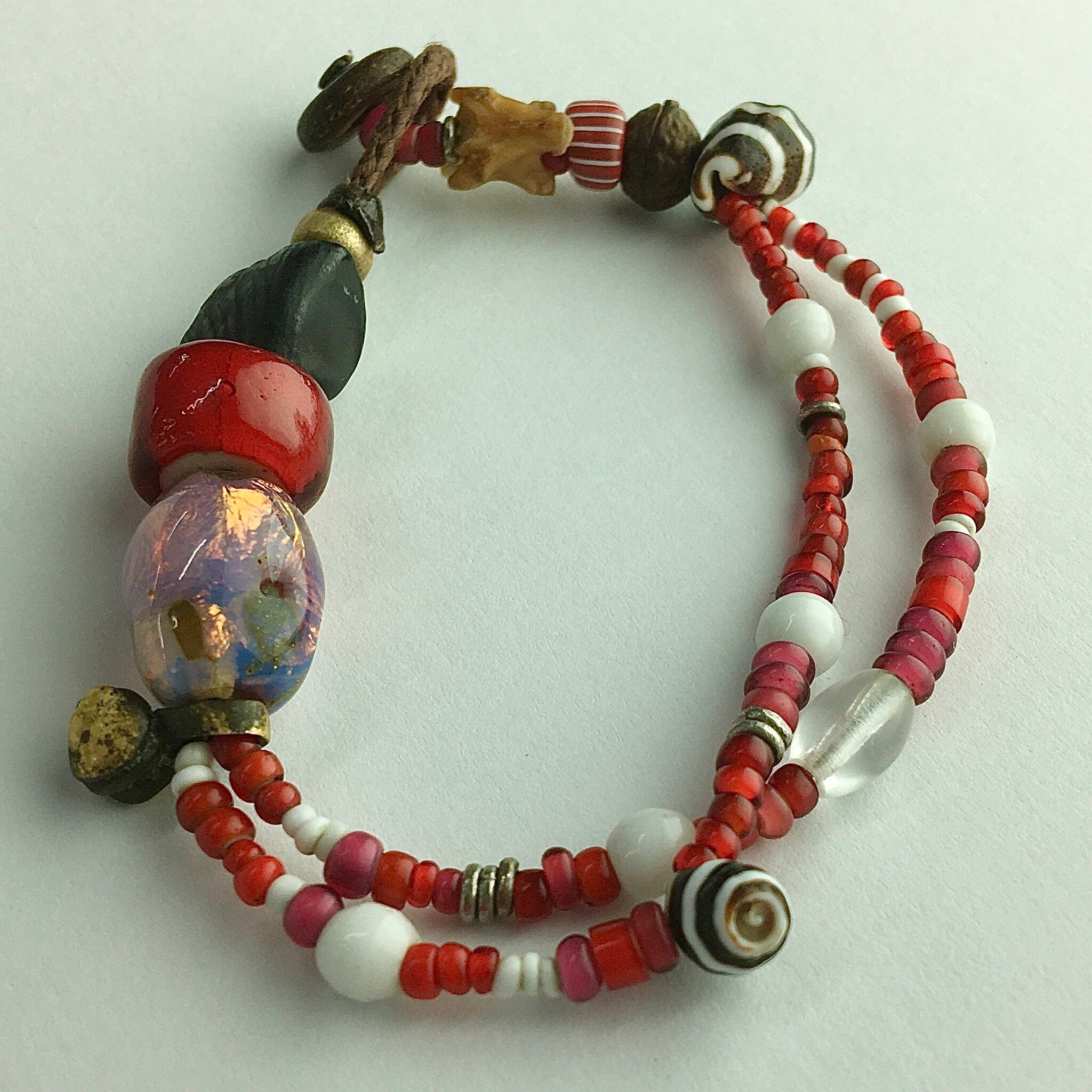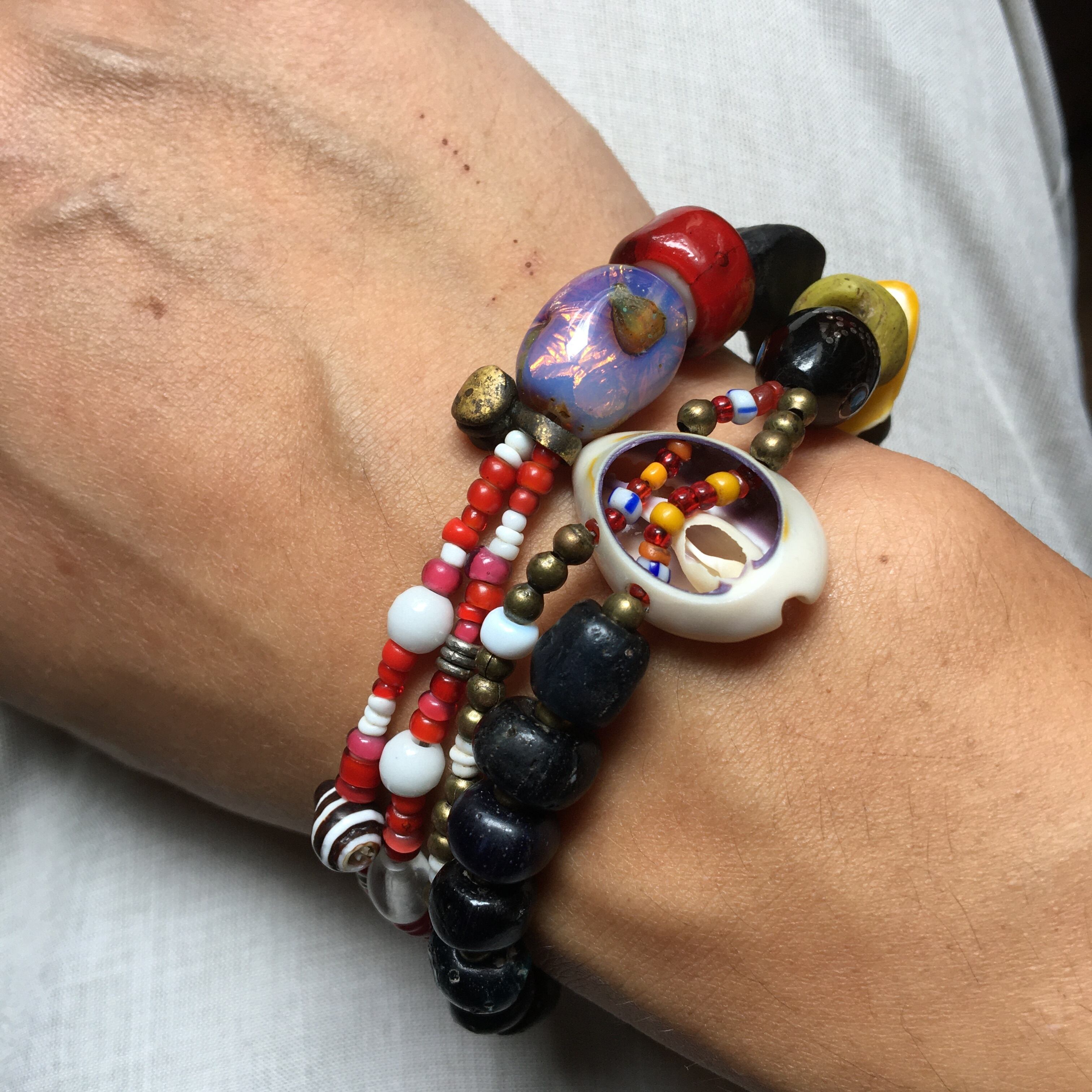 アフリカアンティークの蛇骨を使用したスペシャル2連ブレスレット作品。