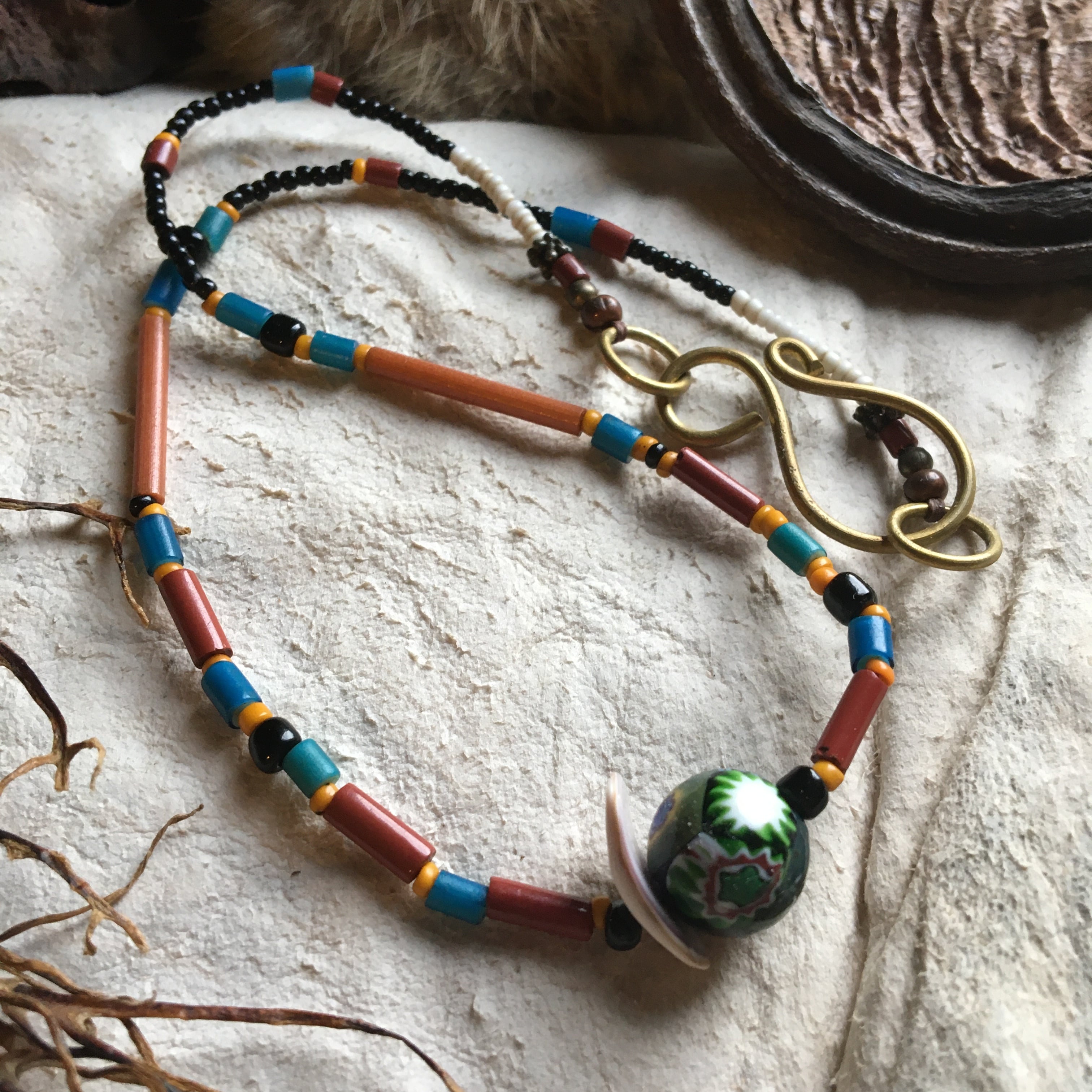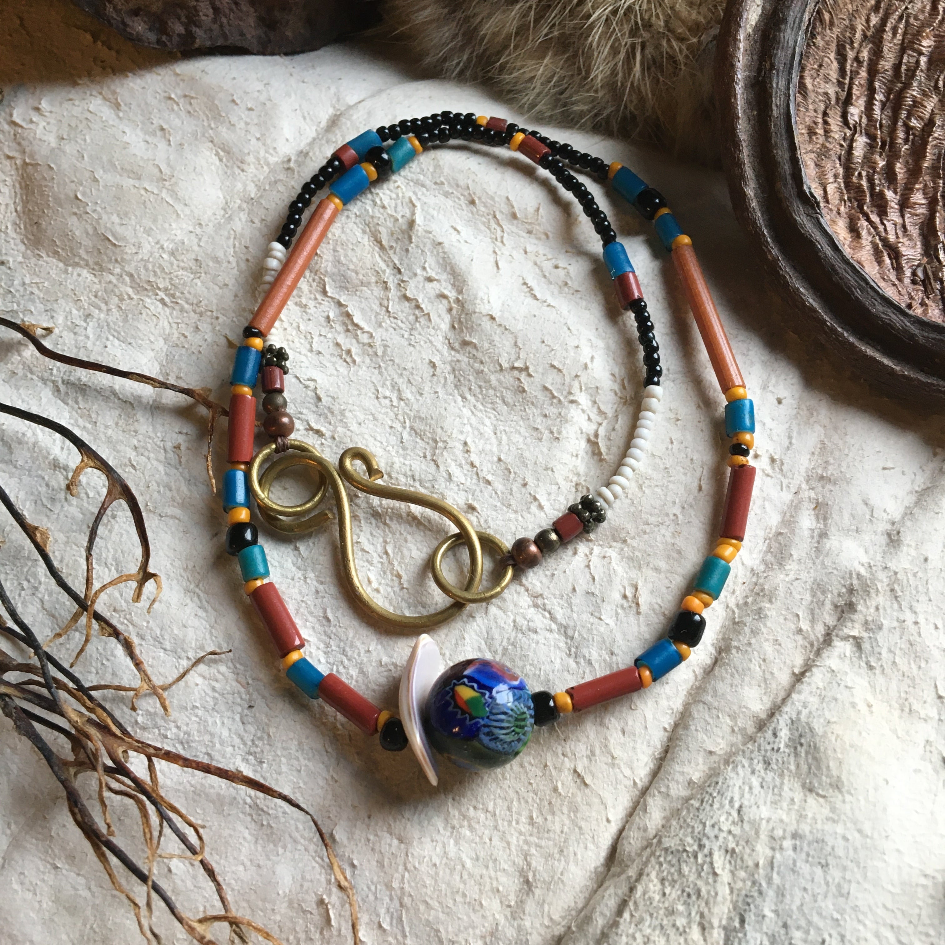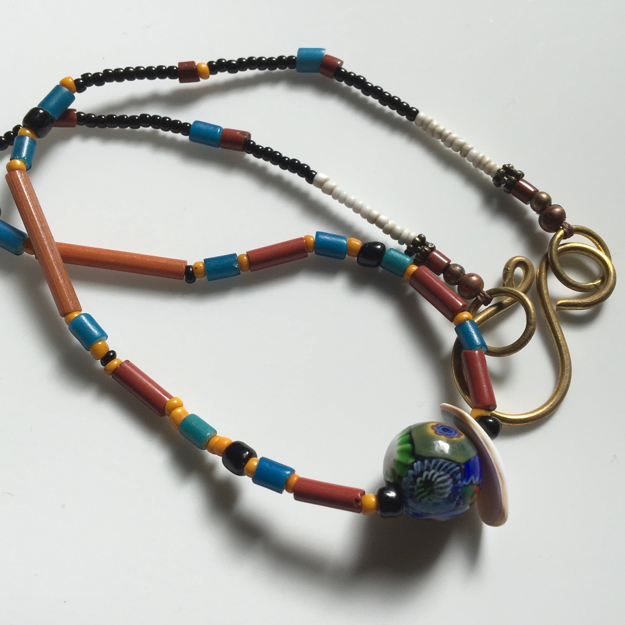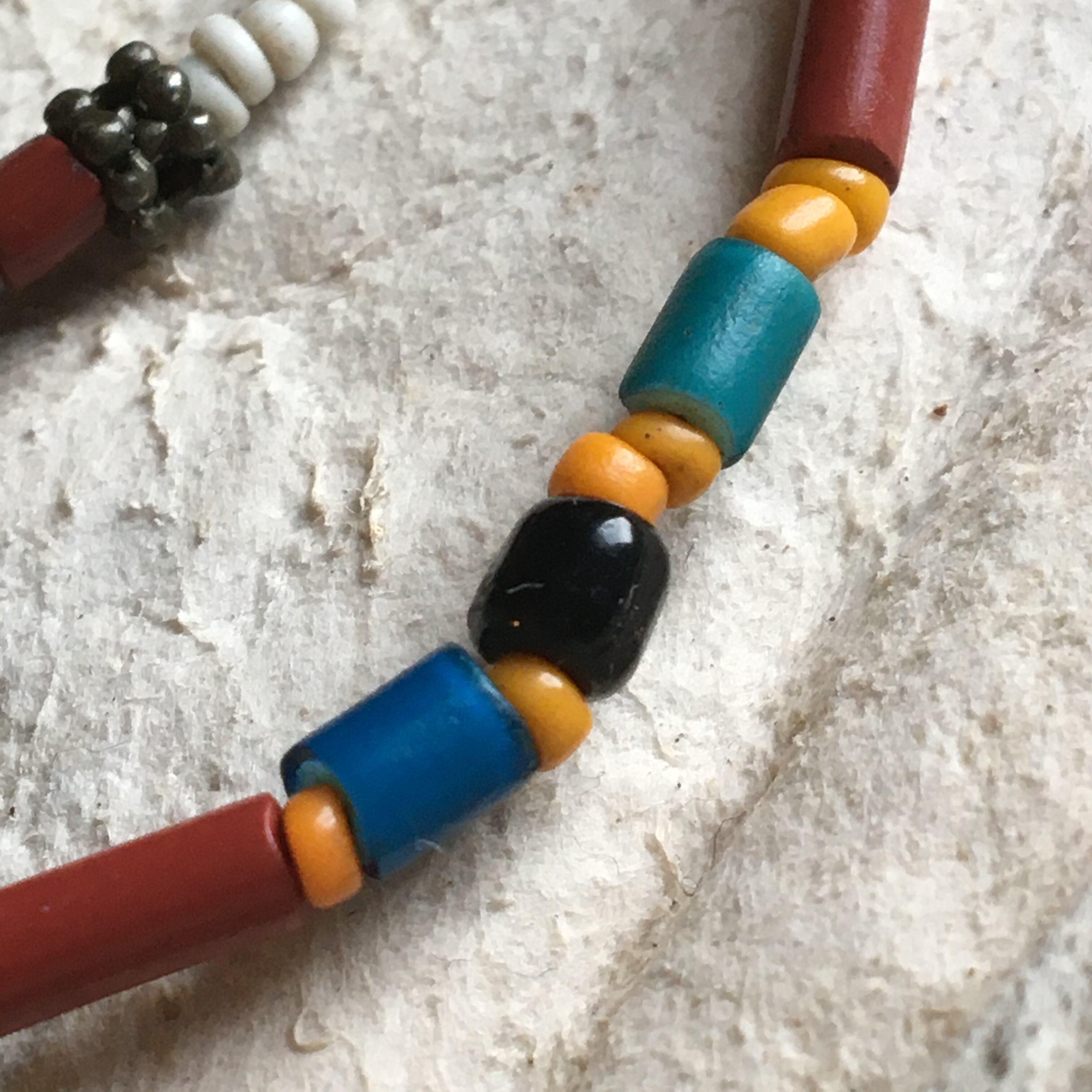 1800〜1900年代ベネチア産希少なブルーのホワイトビーズにベネチア産アンティークのレンガカラーのシリンダービーズ、