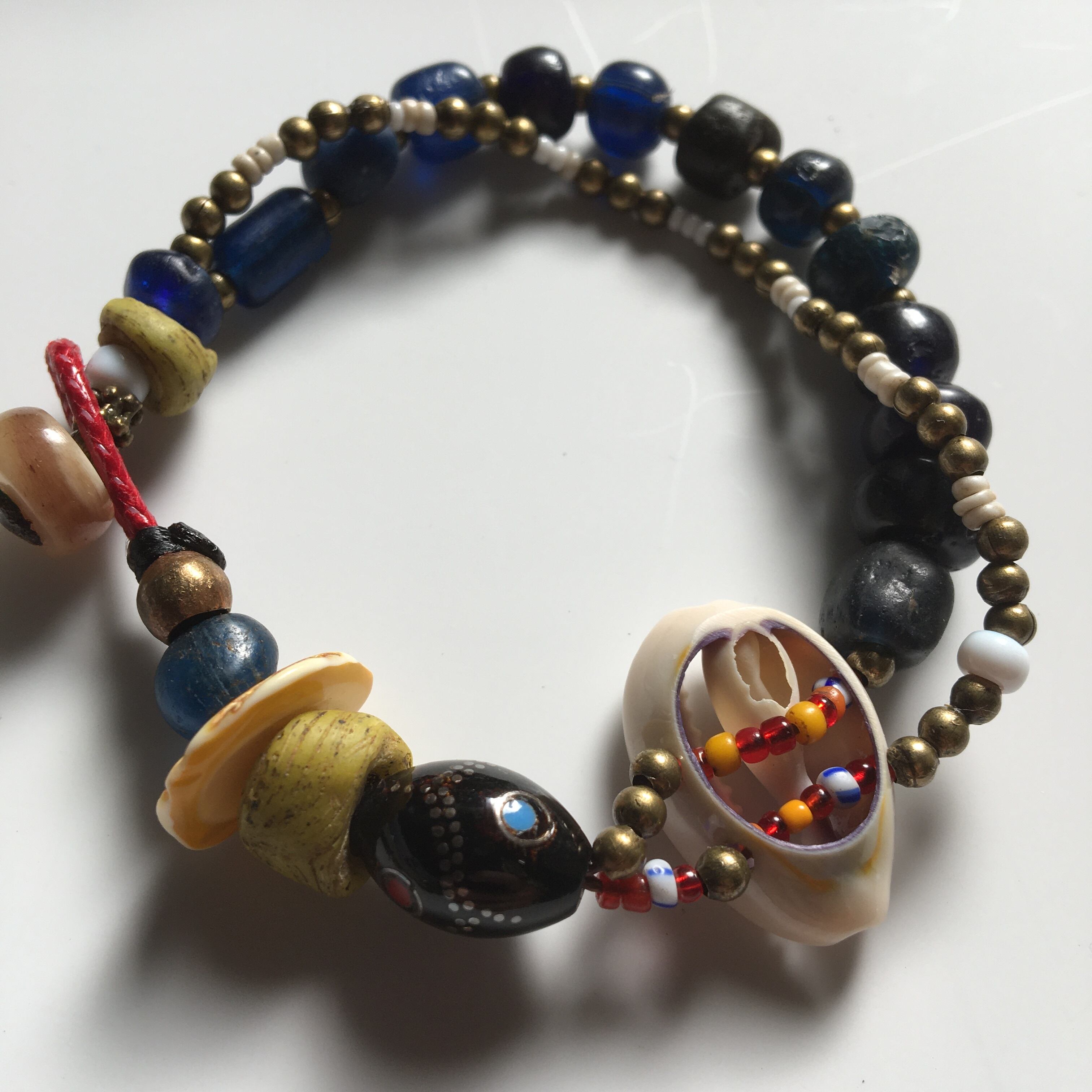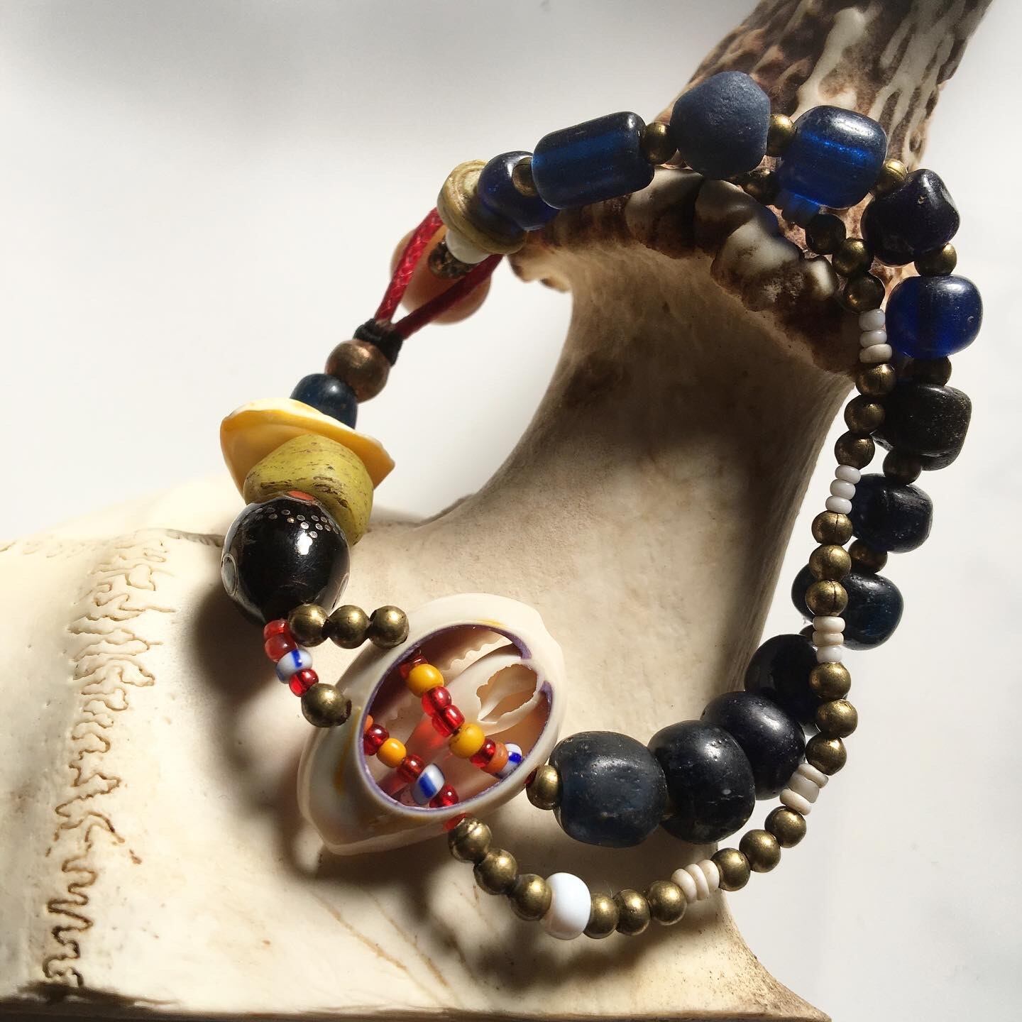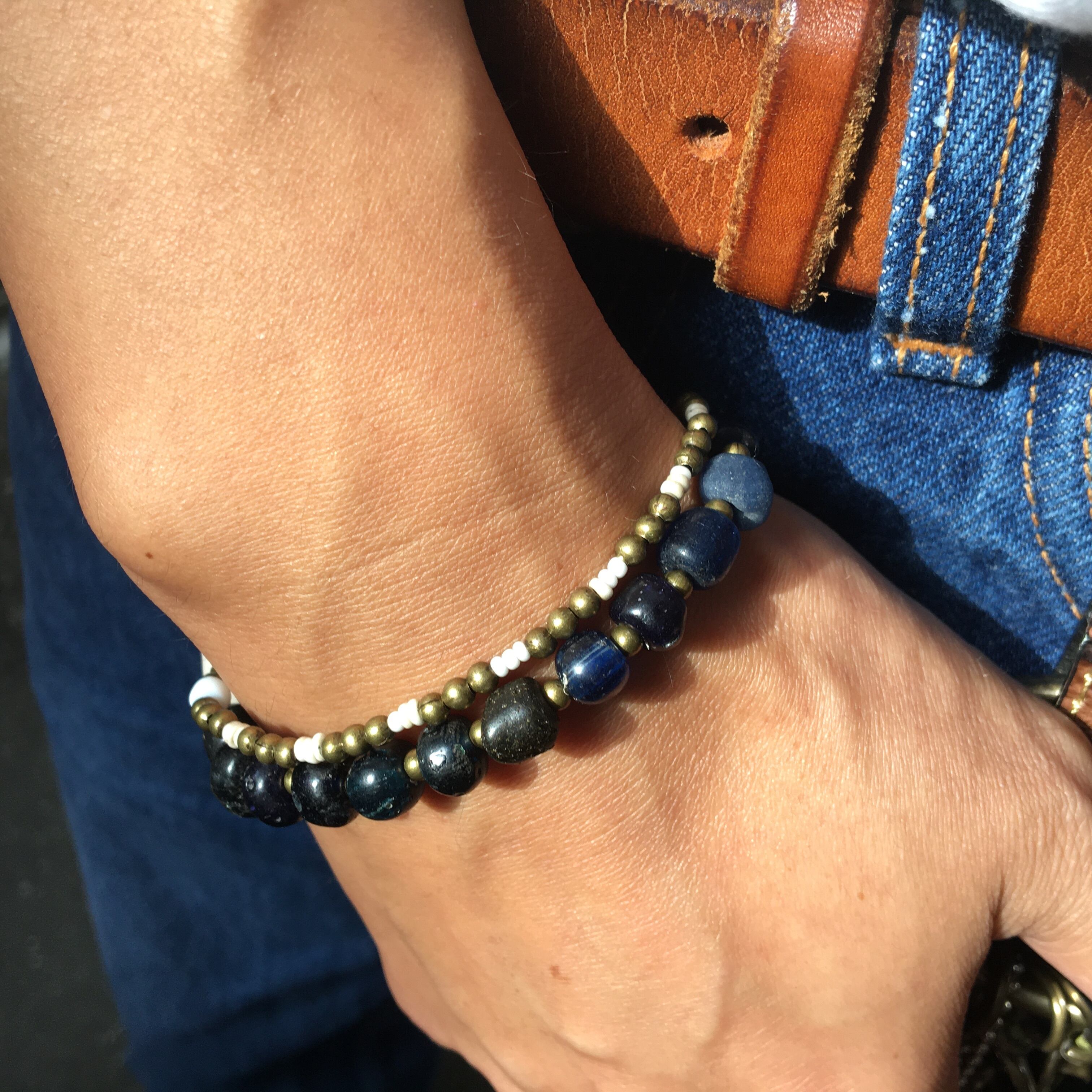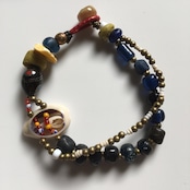 留め具にはアンティークヤクボーンをしようしたトライバル2連ブレスレット作品。