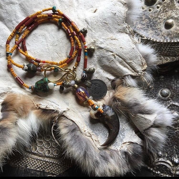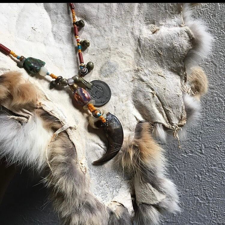 【No.474】アウトドア派にオススメ!!! ワイルドスタイル 熊爪 オールドチベタンターコイズ アフガニスタンコイン マザーオブパール ネックレス