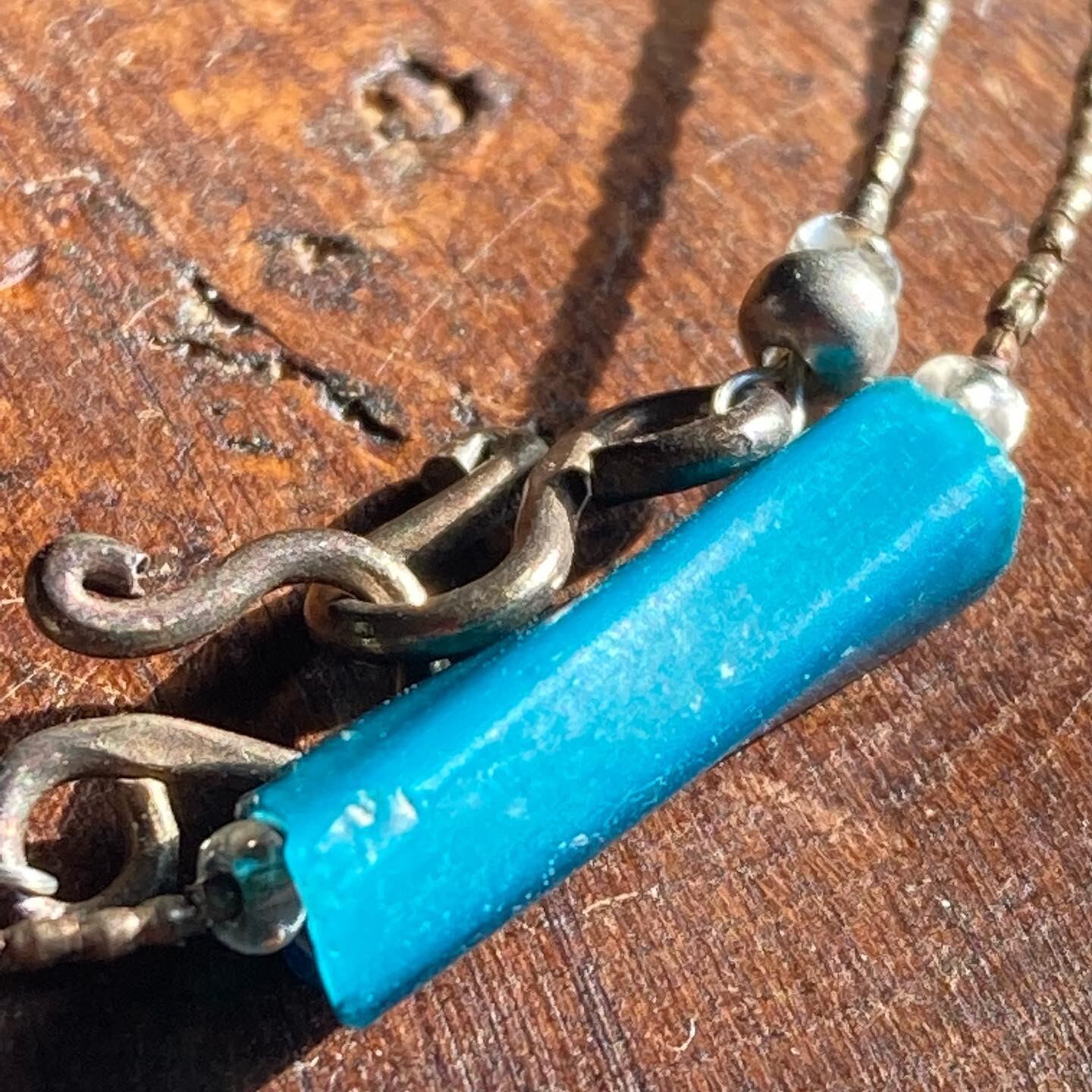 このネックレスは、南米ペルーからやってきた、とても珍しい種類のトレードビーズを使用しています。