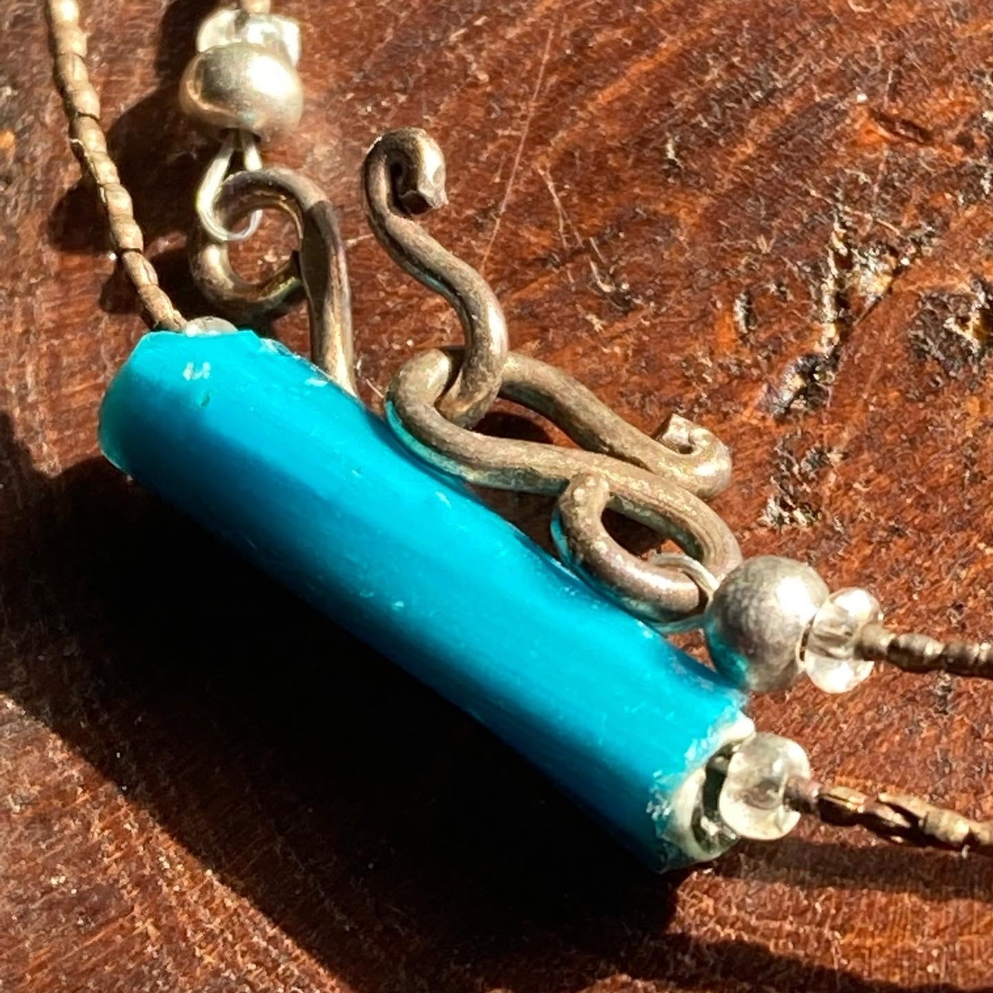 【No.481】超希少種 南米ペルー渡り ツイスト ヌエバカディス トレードビーズ カレンシルバー ネックレス