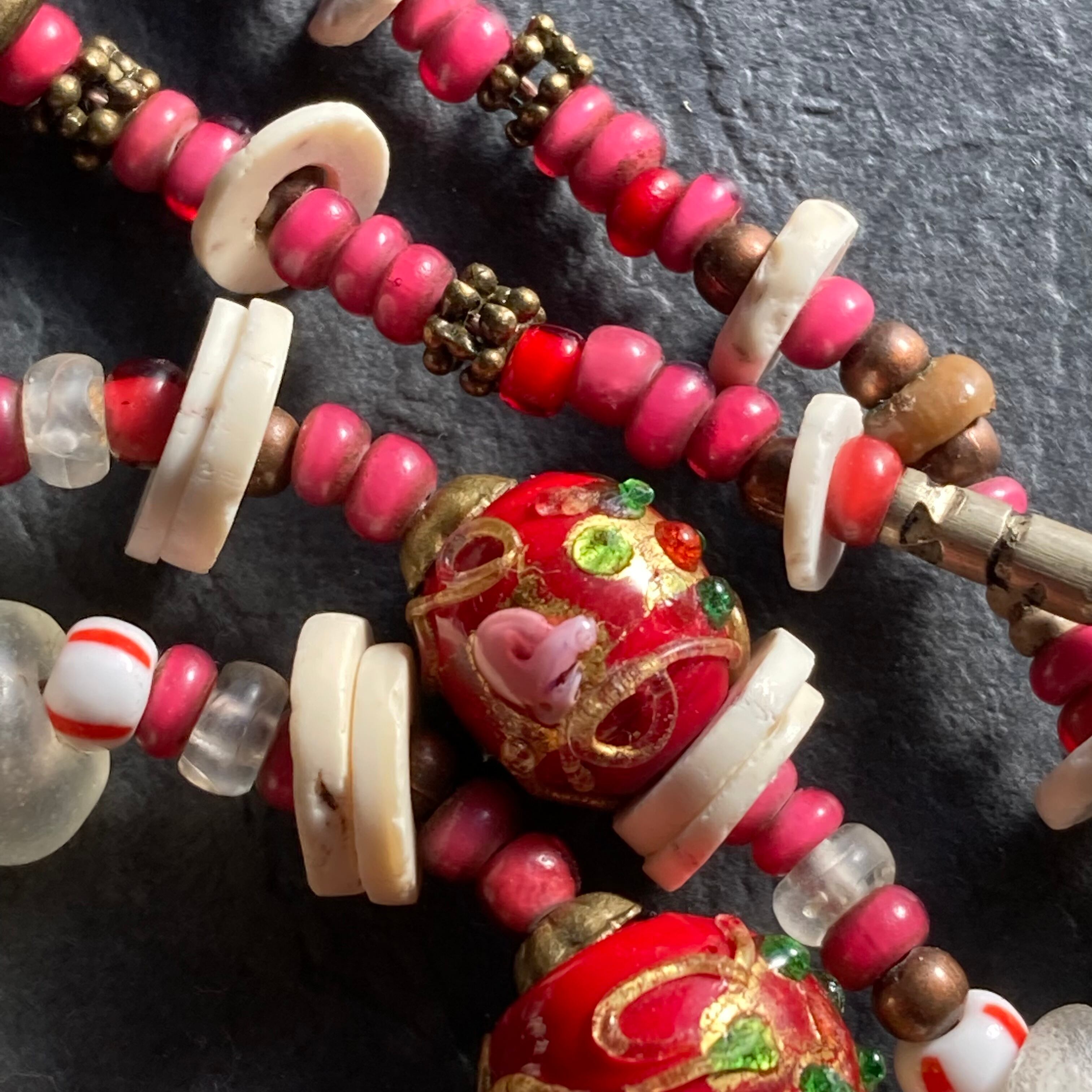 【No.487】華やかなトライバルネックレス ホワイトハーツ 鹿角 ドゴン族