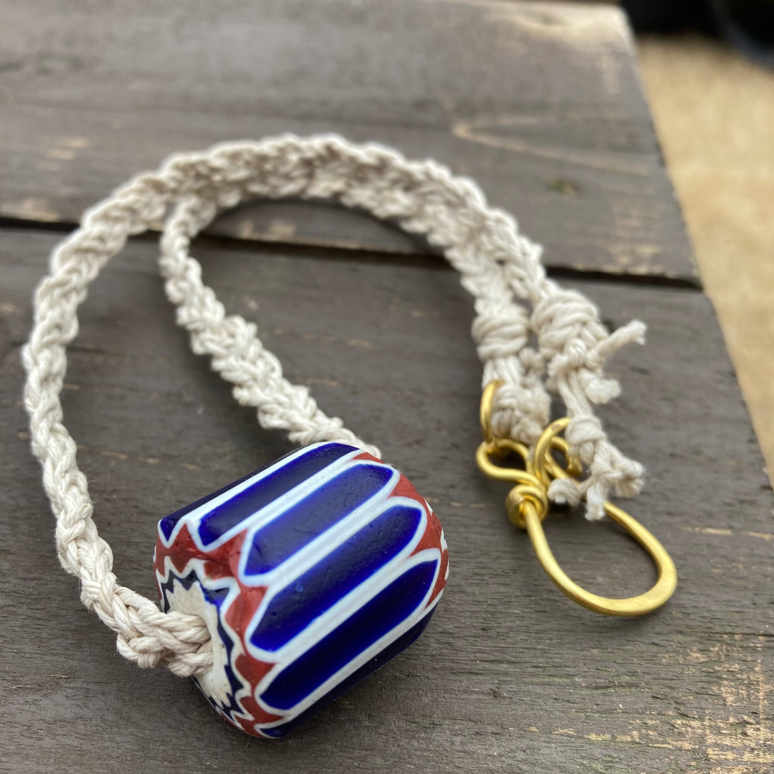 【No.489】アウトドア 特大 antique シェブロン 6層 麻紐 編み込みネックレス