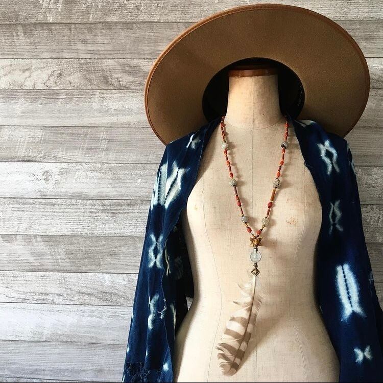 本物の希少な特大鷲羽フェザーを使用したトライバルロングネックレス。