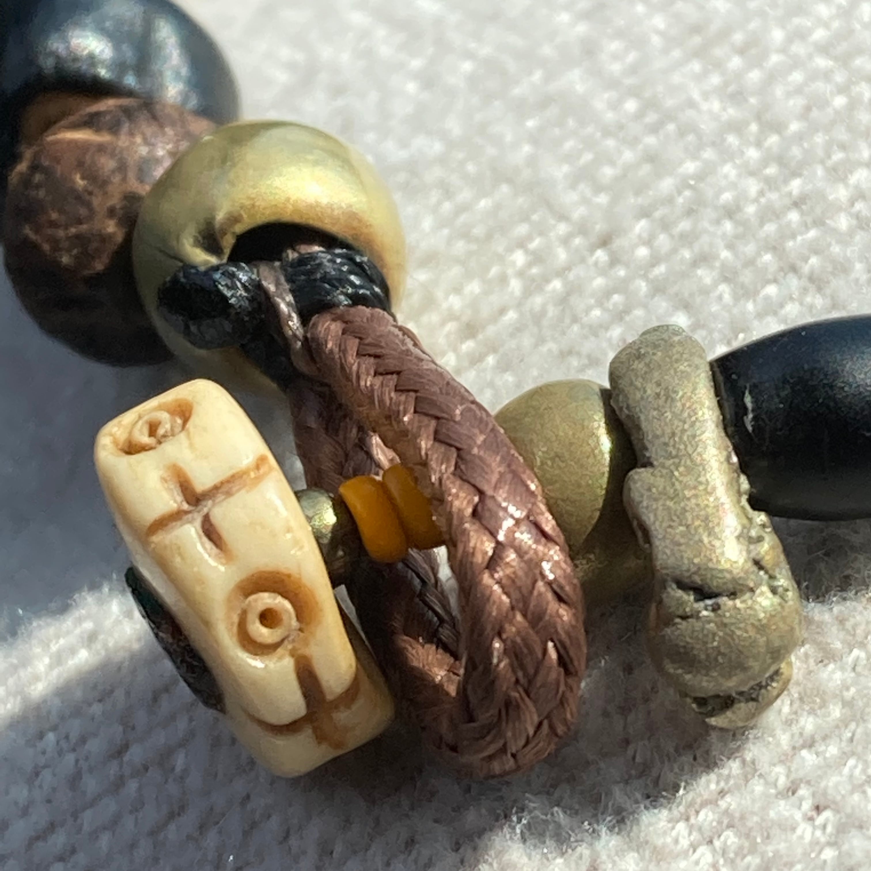 摩耗具合がカッコいい少数民族オールドブラスチャームをさり気なく使用。