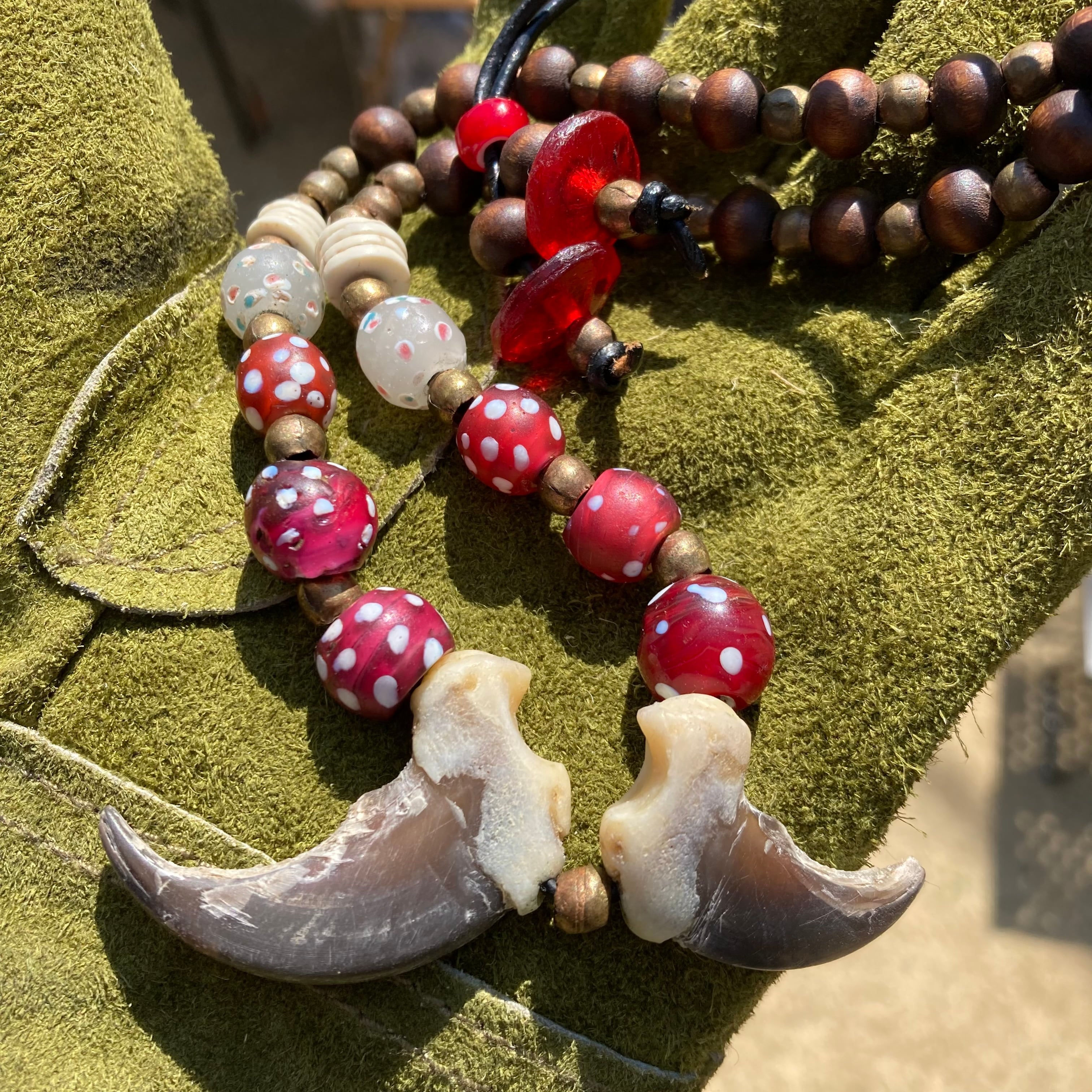 【No.509】antique スカンク ダブル熊爪 オーストリッチ トライバルネックレス
