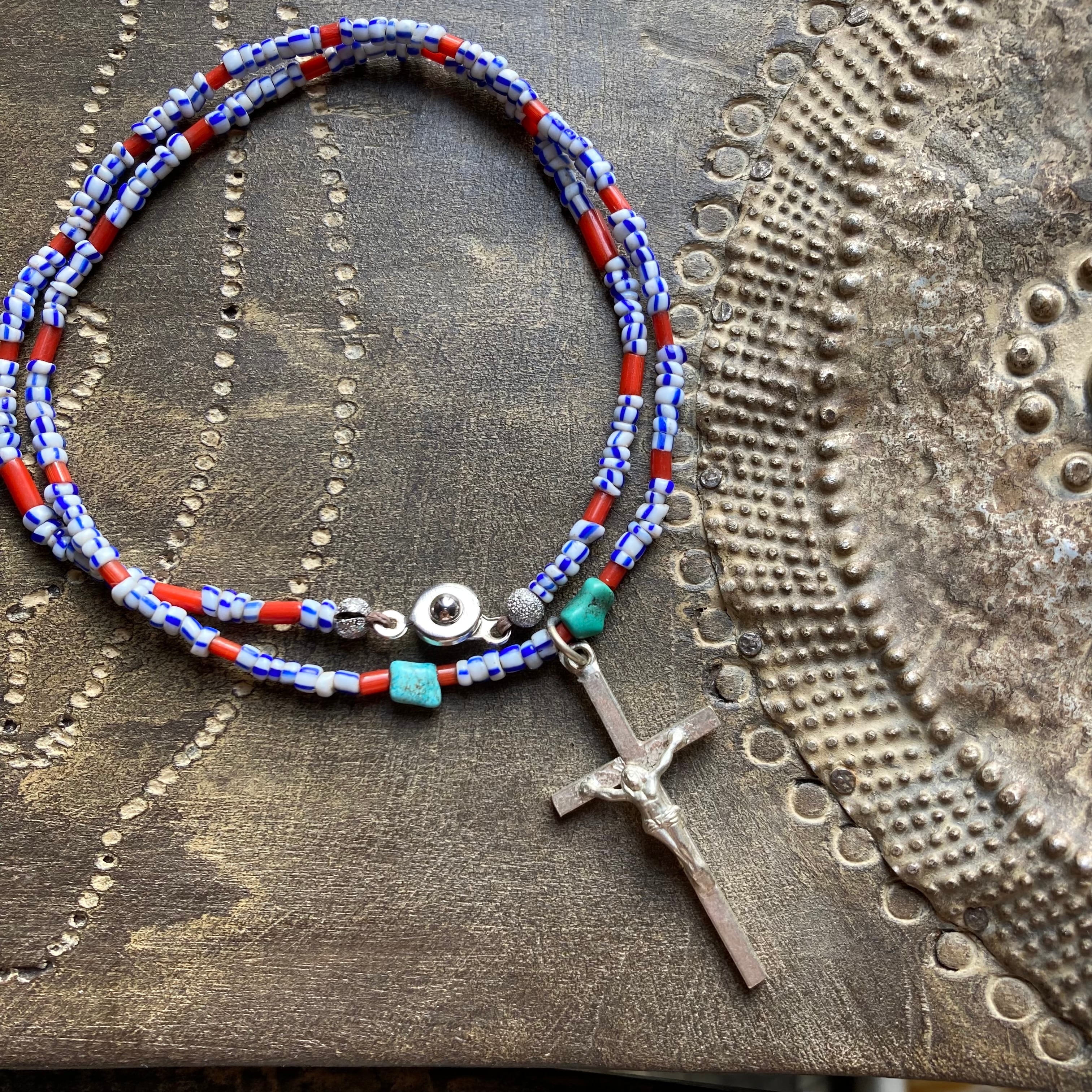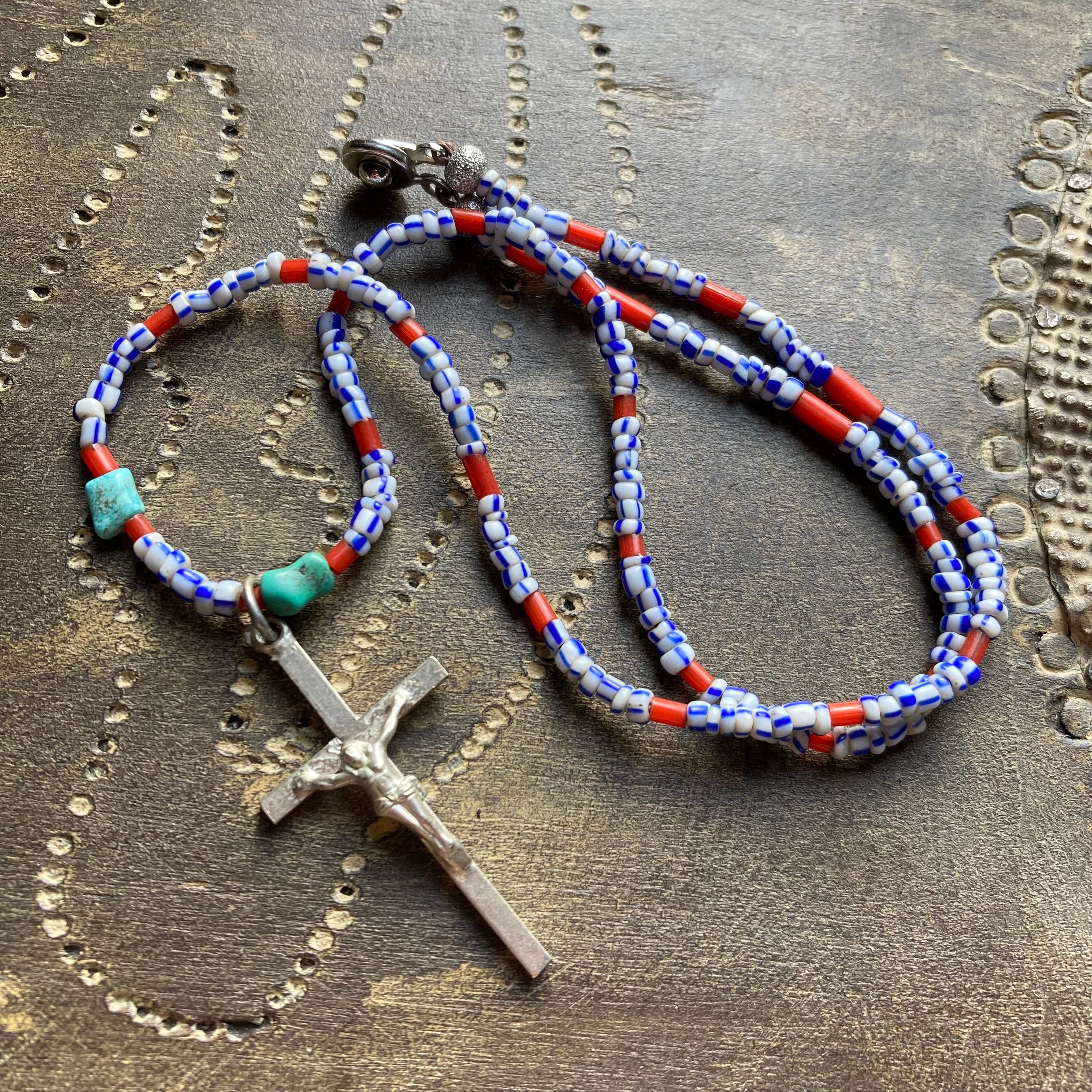 【No.511】ジーザス 十字架 yes ネックレス ターコイズ ホワイトハーツ アンティークビーズ