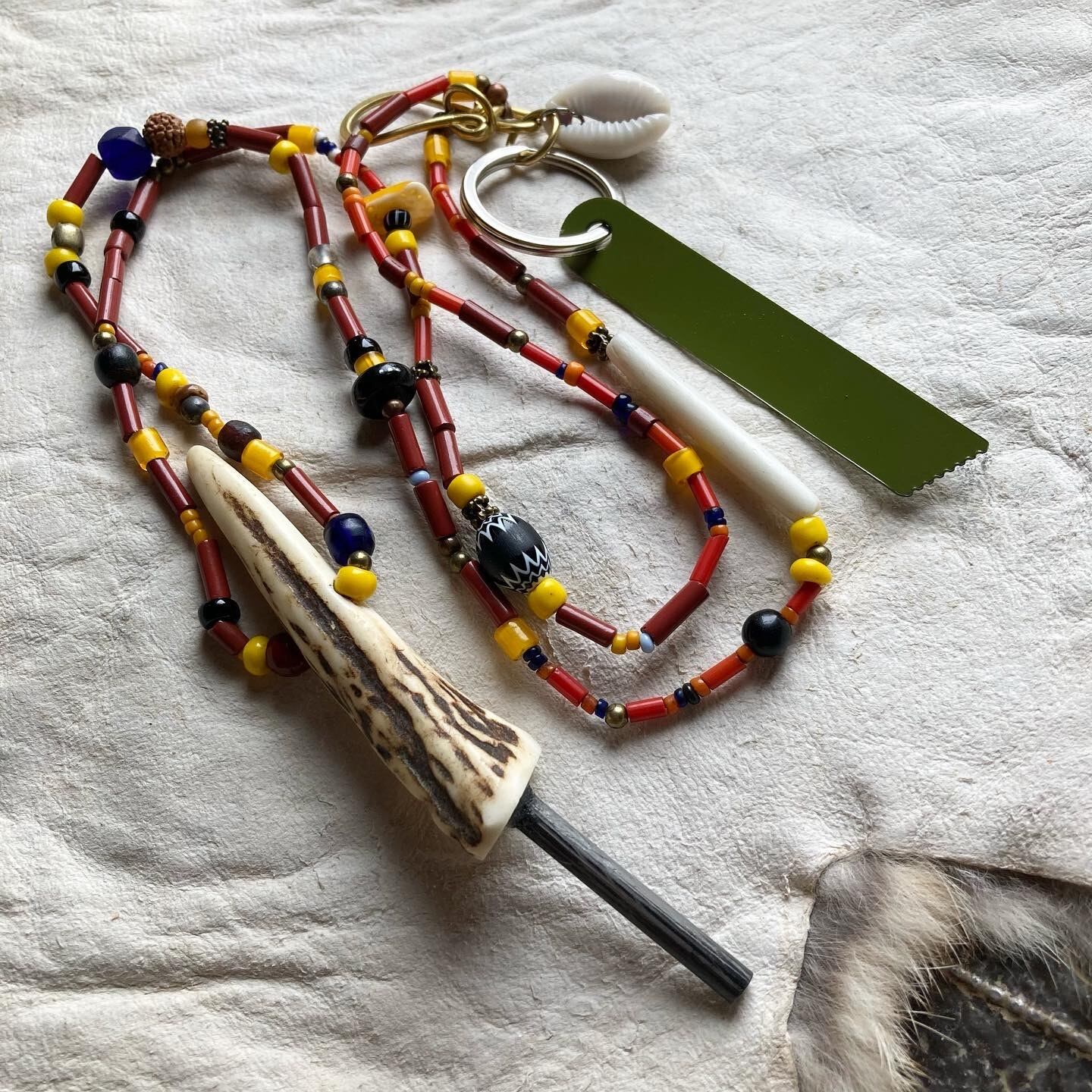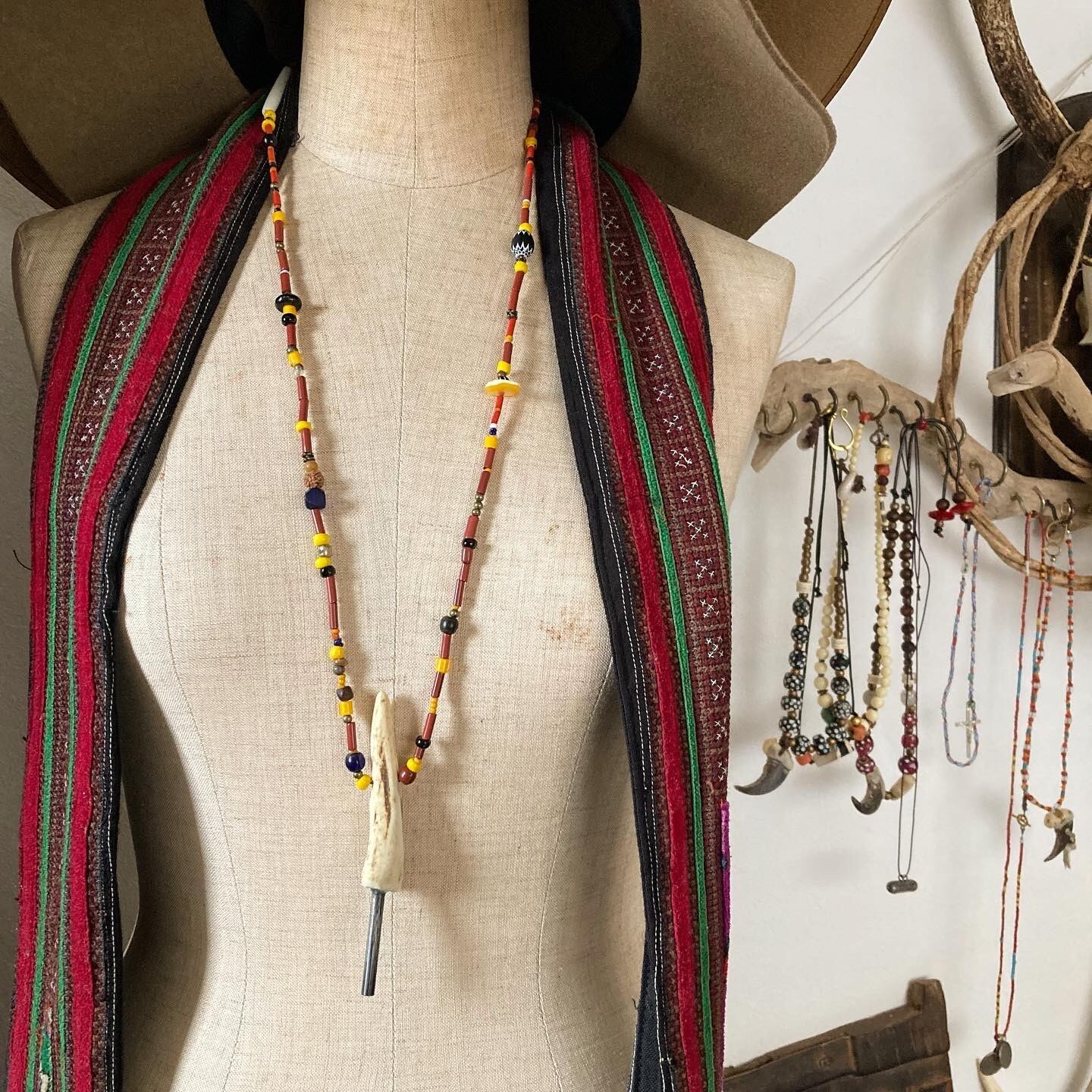 【No.517】outdoor 鹿角ファイヤースターター アンティークビーズ ロングネックレス