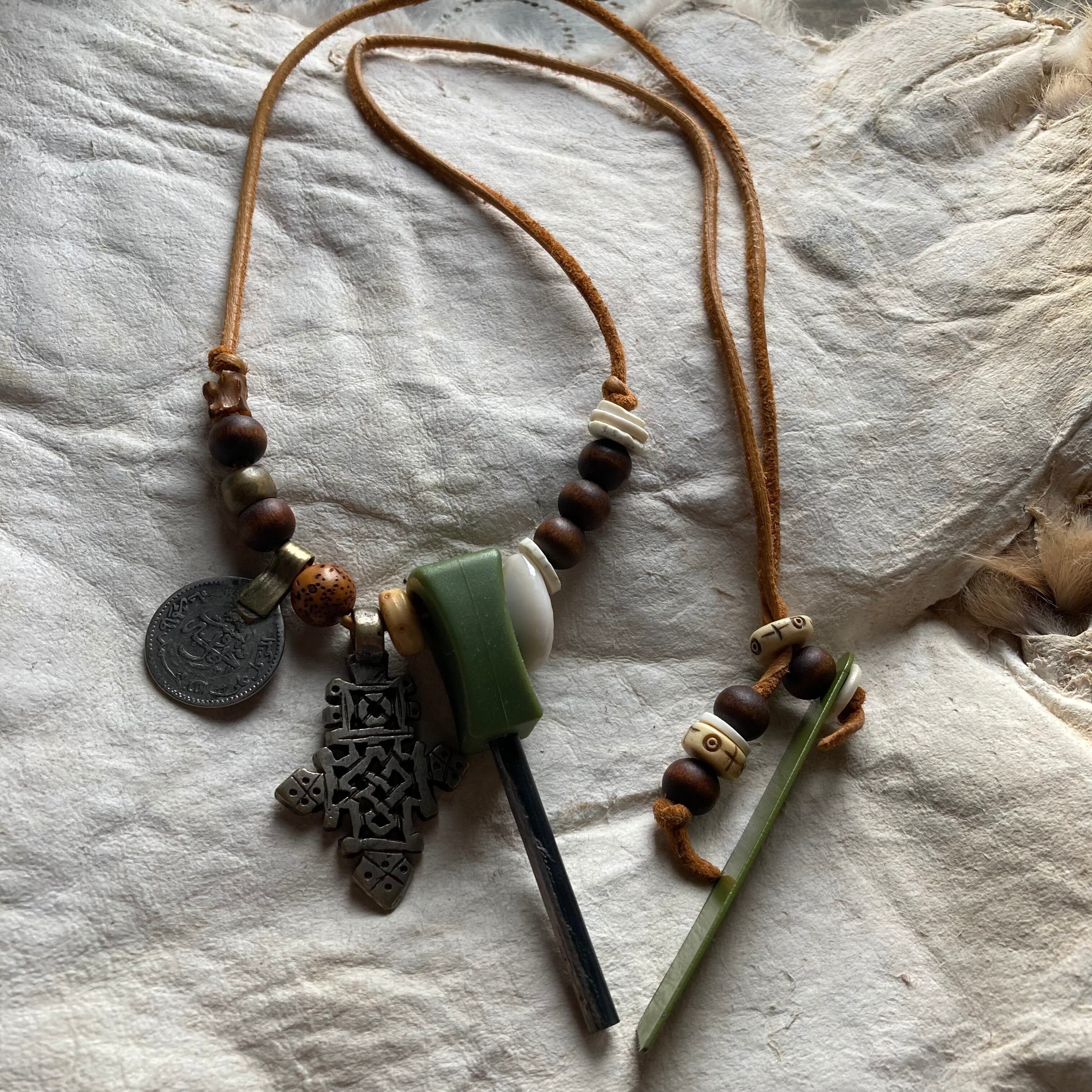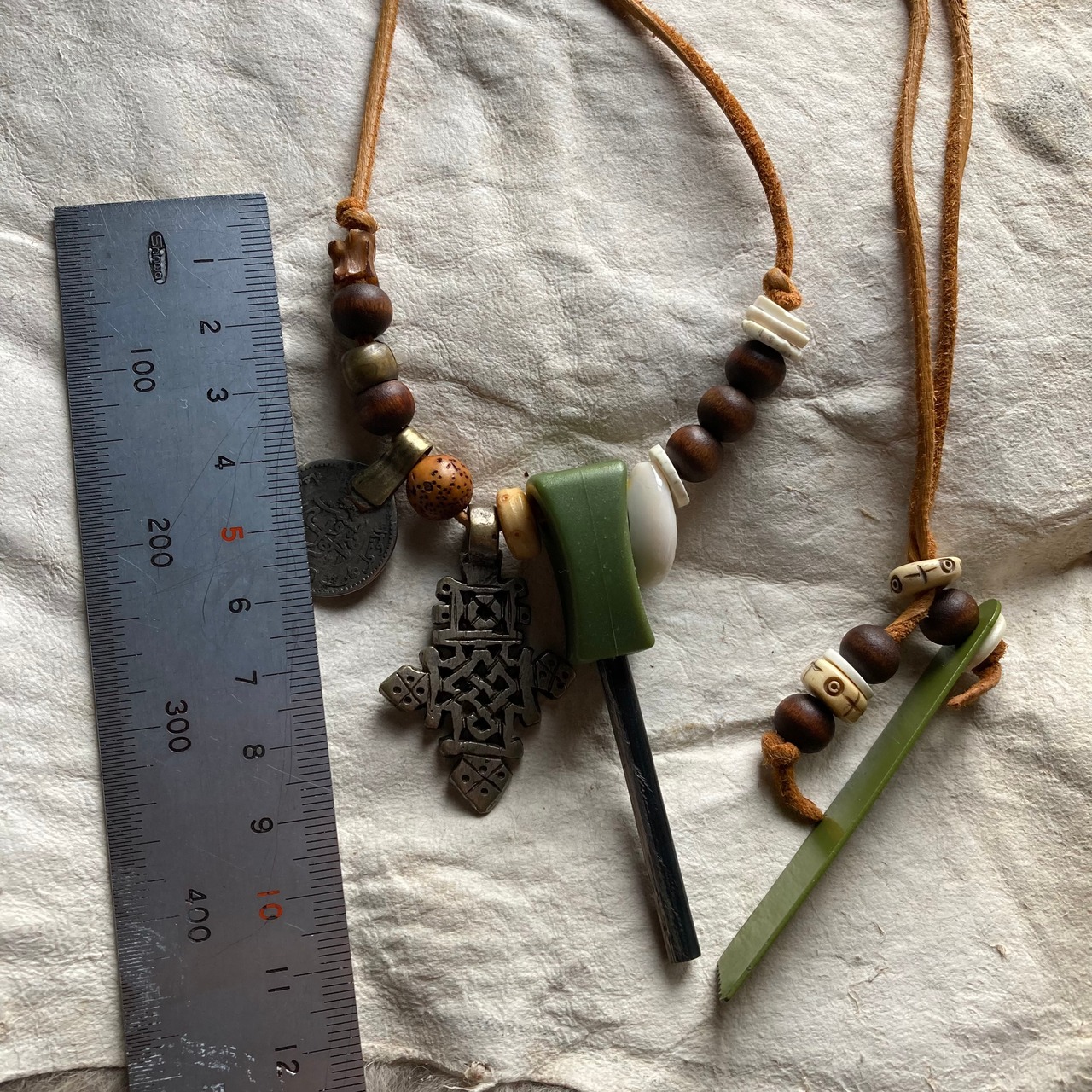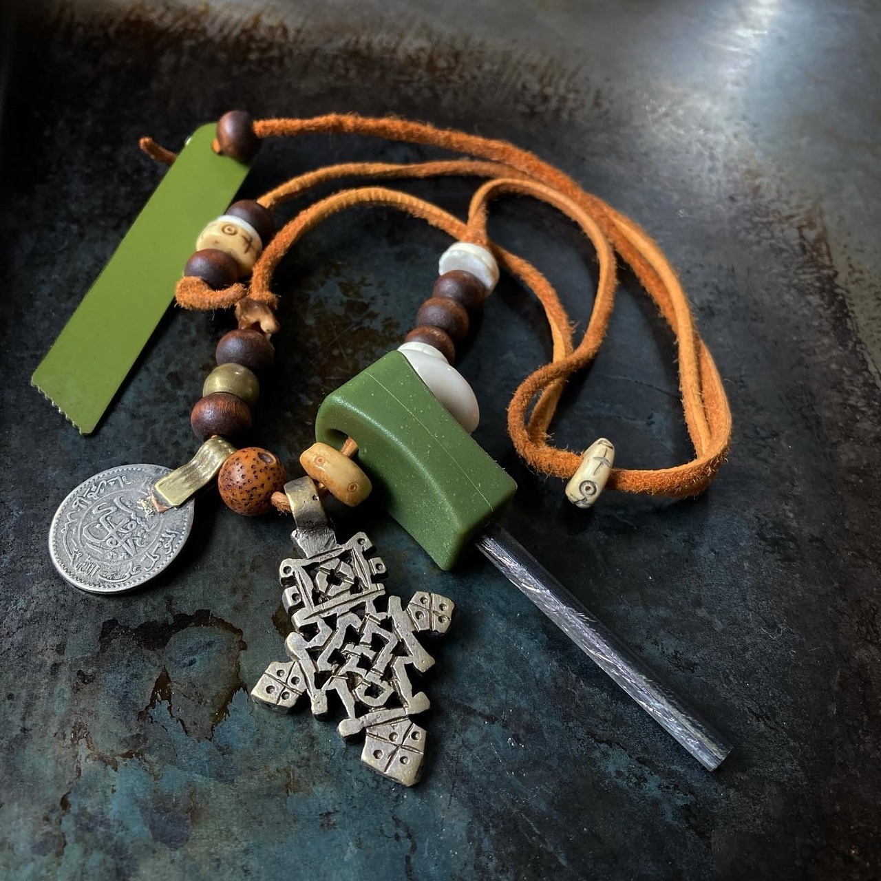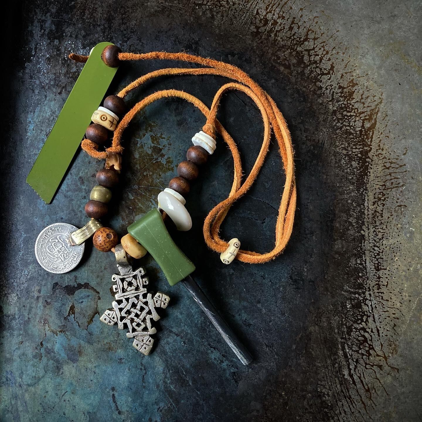 【No.518】outdoor ファイヤースターター ネックレス エチオピアンクロス アフガニスタンコイン