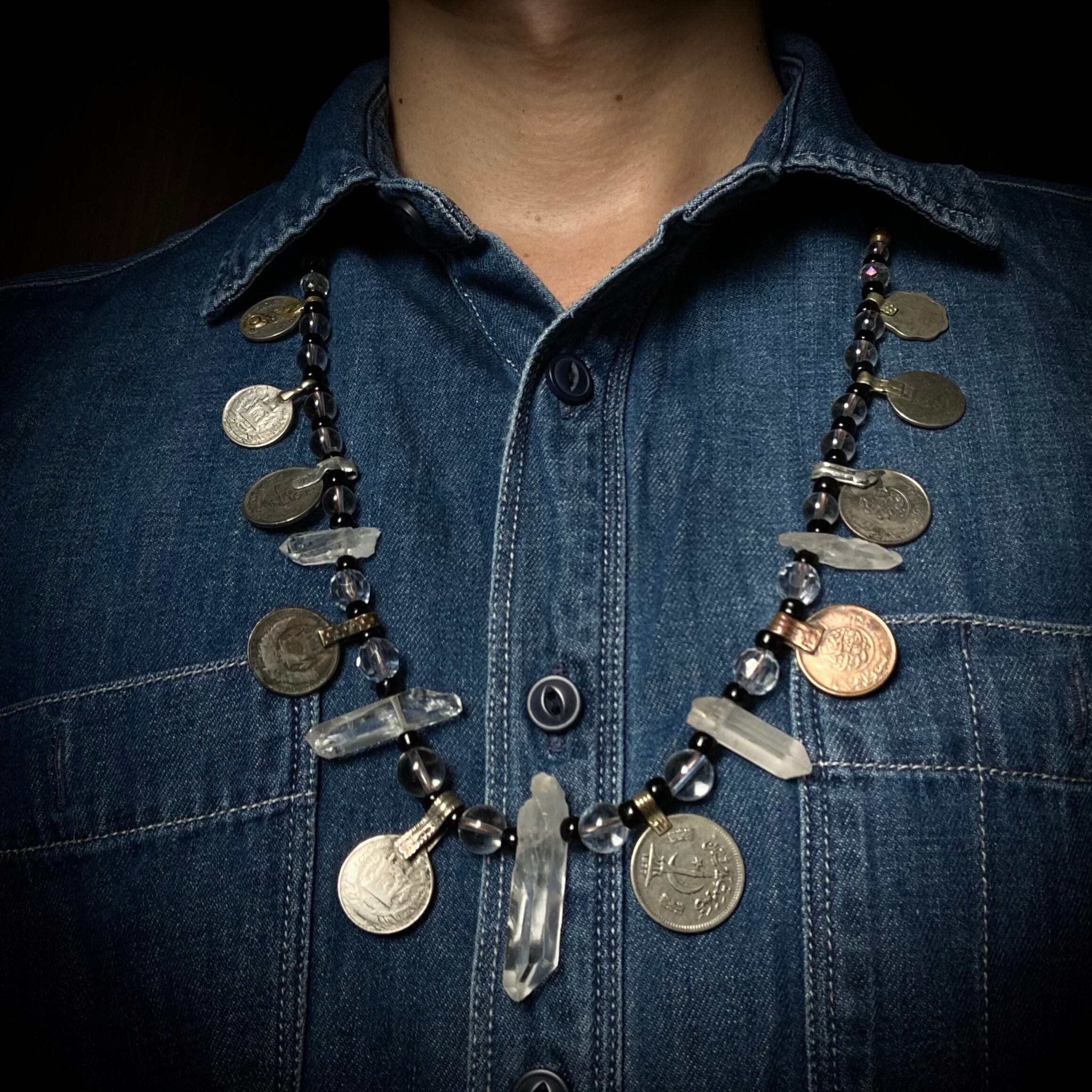 【No.541】お客様専用オーダー 水晶 オールドコイン トライバル ネックレス
